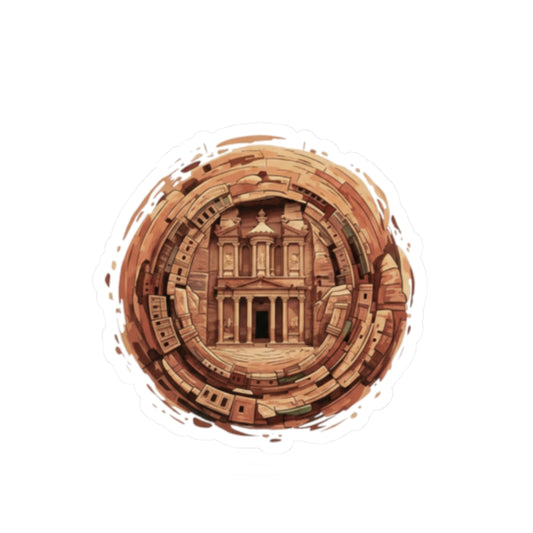 Petra Circle Sticker — Ancient Rock-Cut Tomb Illustration Kiss-Cut Sticker