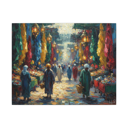 Middle Eastern Market Matte Canvas Wall Art — Colorful Bazaar Street Scene