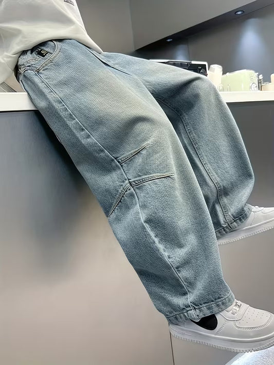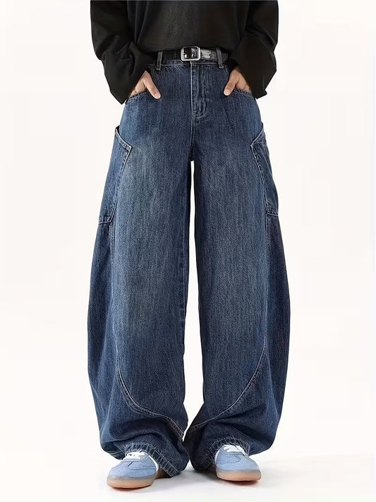 Vintage Washed Wide-Leg Jeans - Classic Loose-Fit Straight-Leg Denim Pants