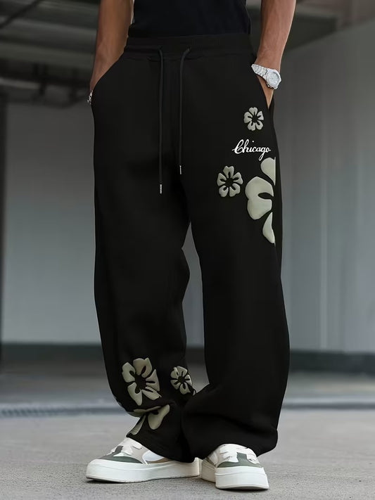 Loose Wide-Leg Jeans with a Curved Blade Design, Featuring Letter Embroidery And Large Pockets