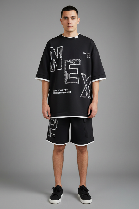 Men's Black Striped Set