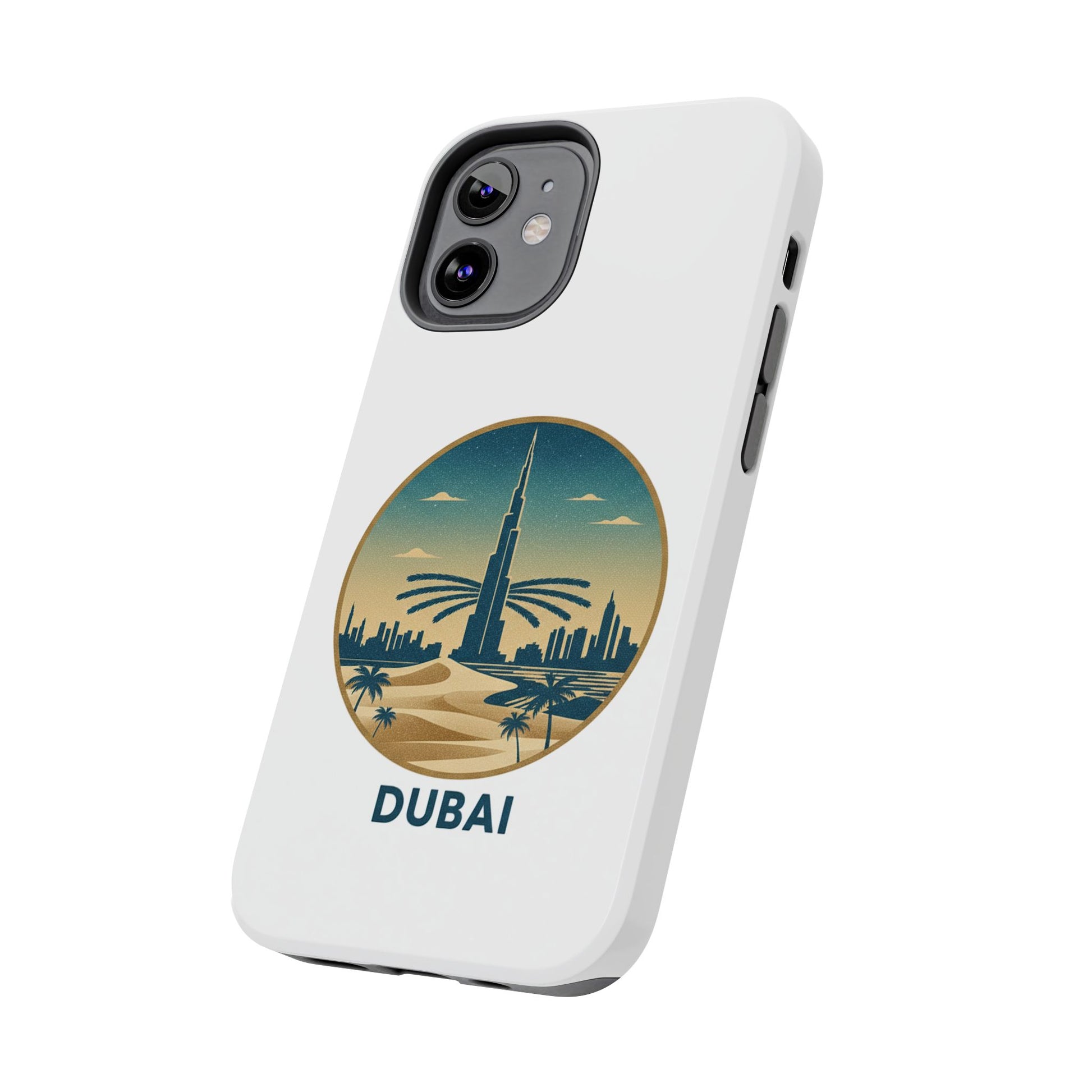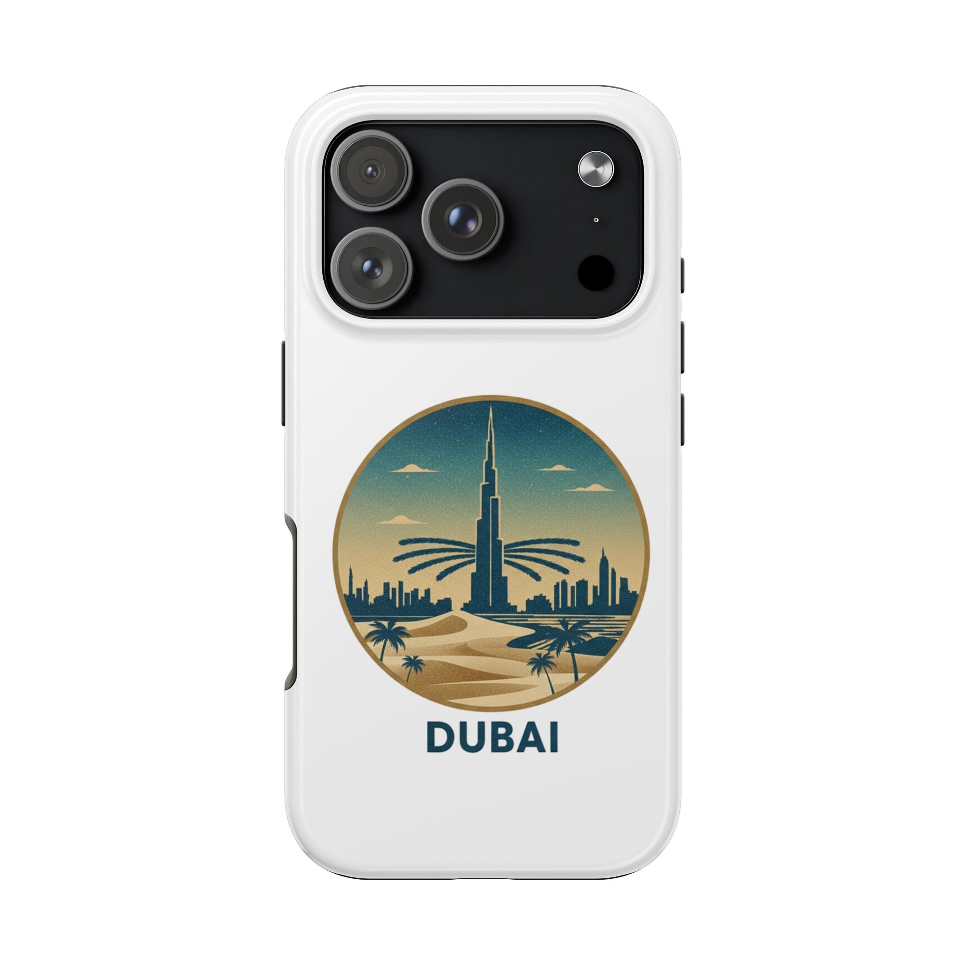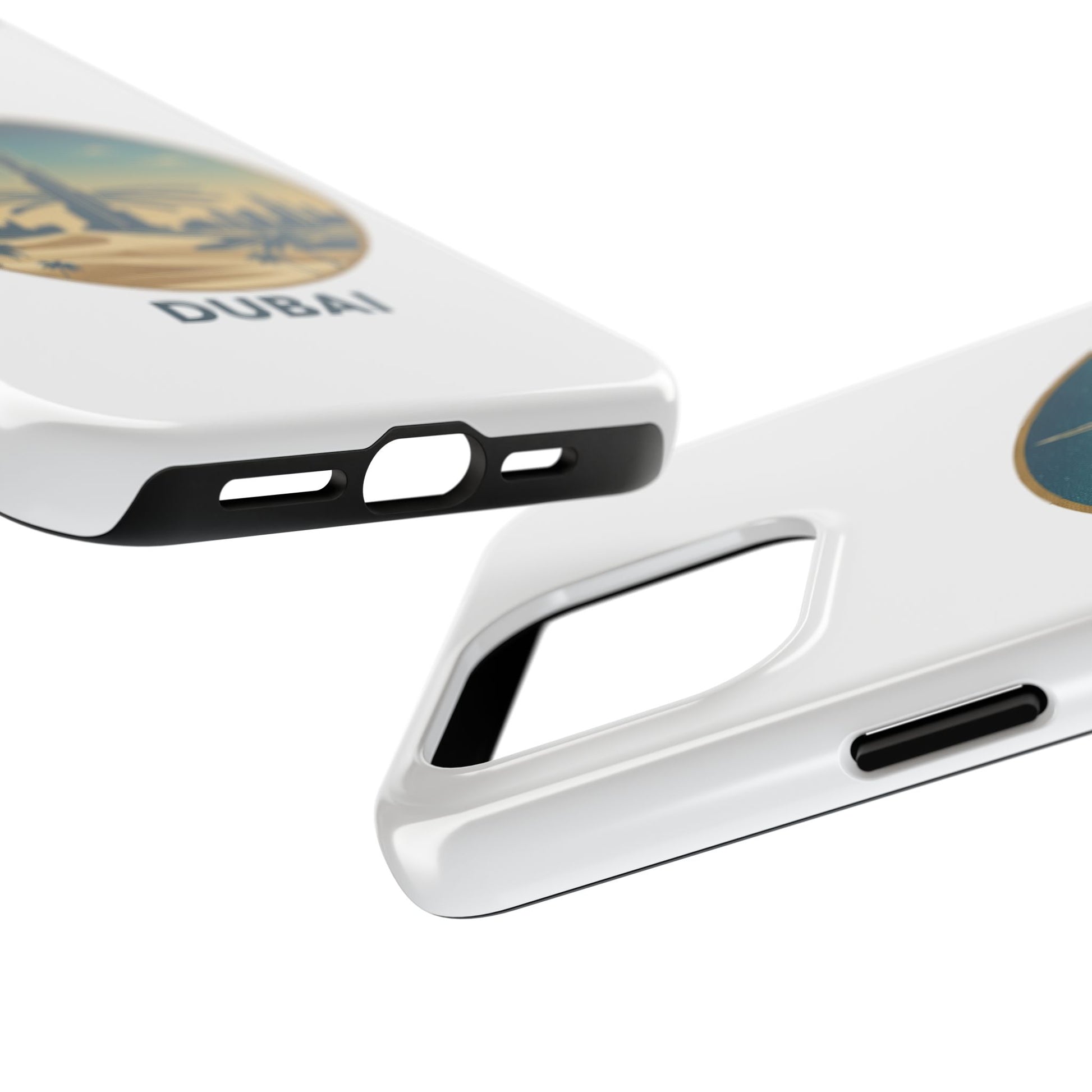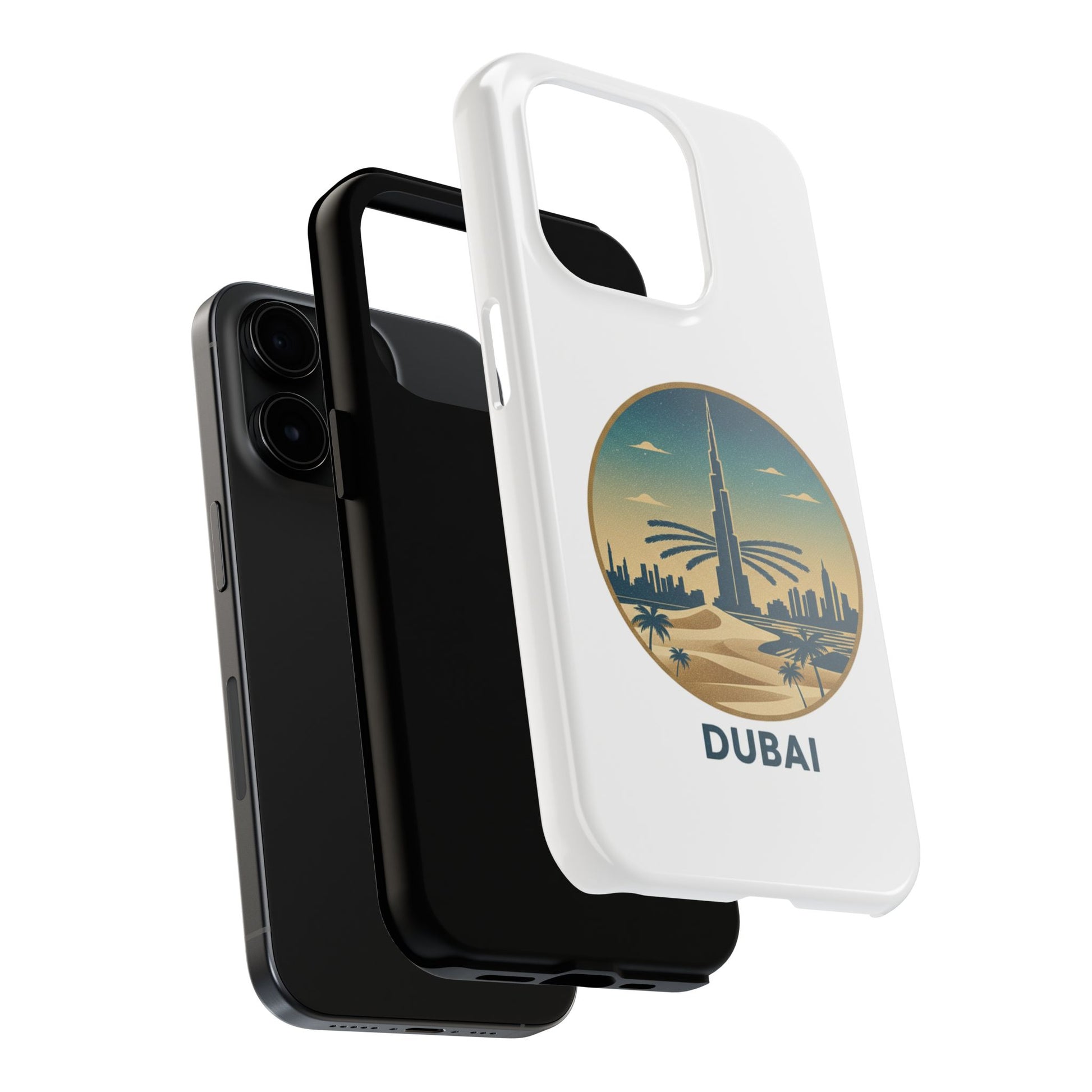 Coque de téléphone résistante motif skyline de Dubaï — Étui de voyage rétro palmiers du désert