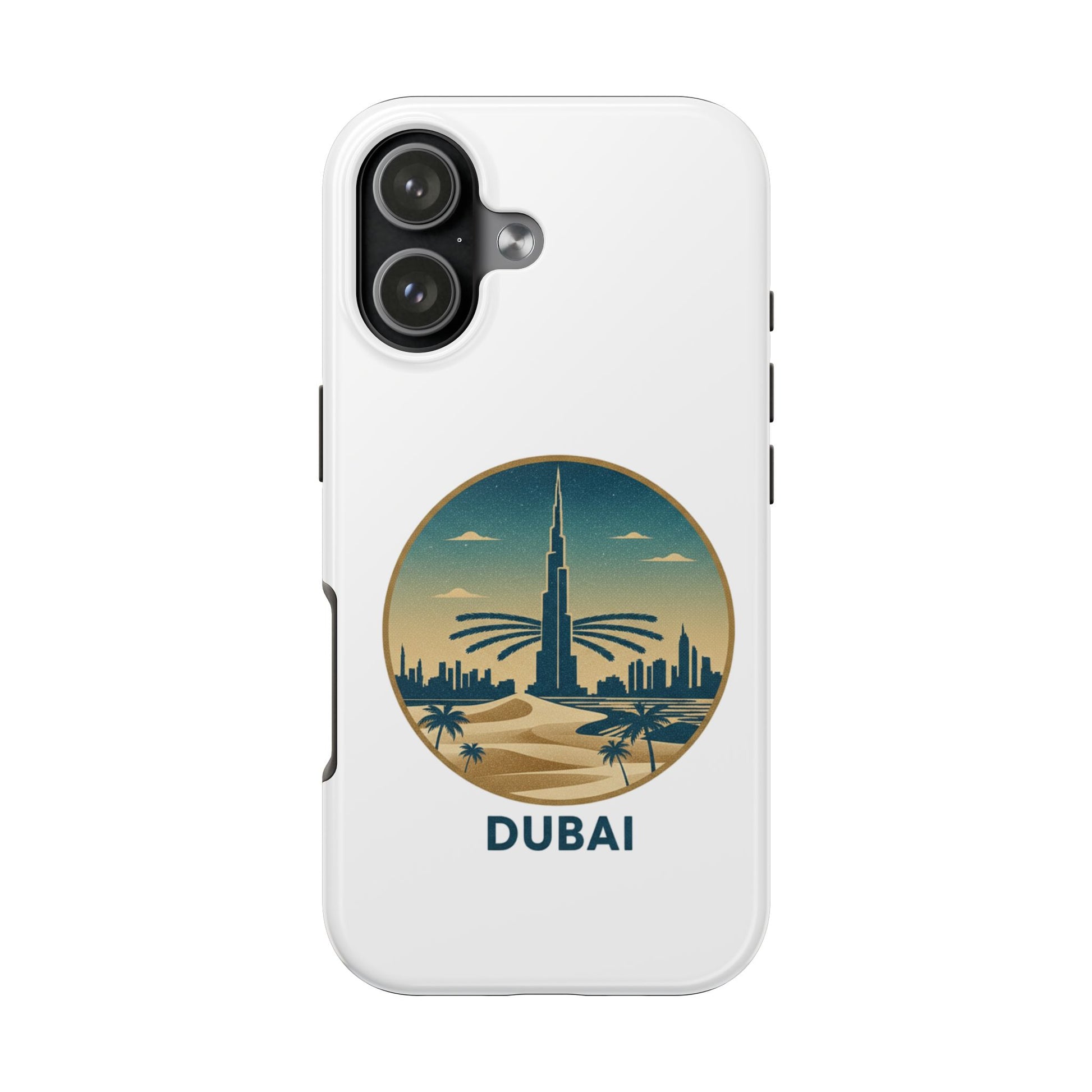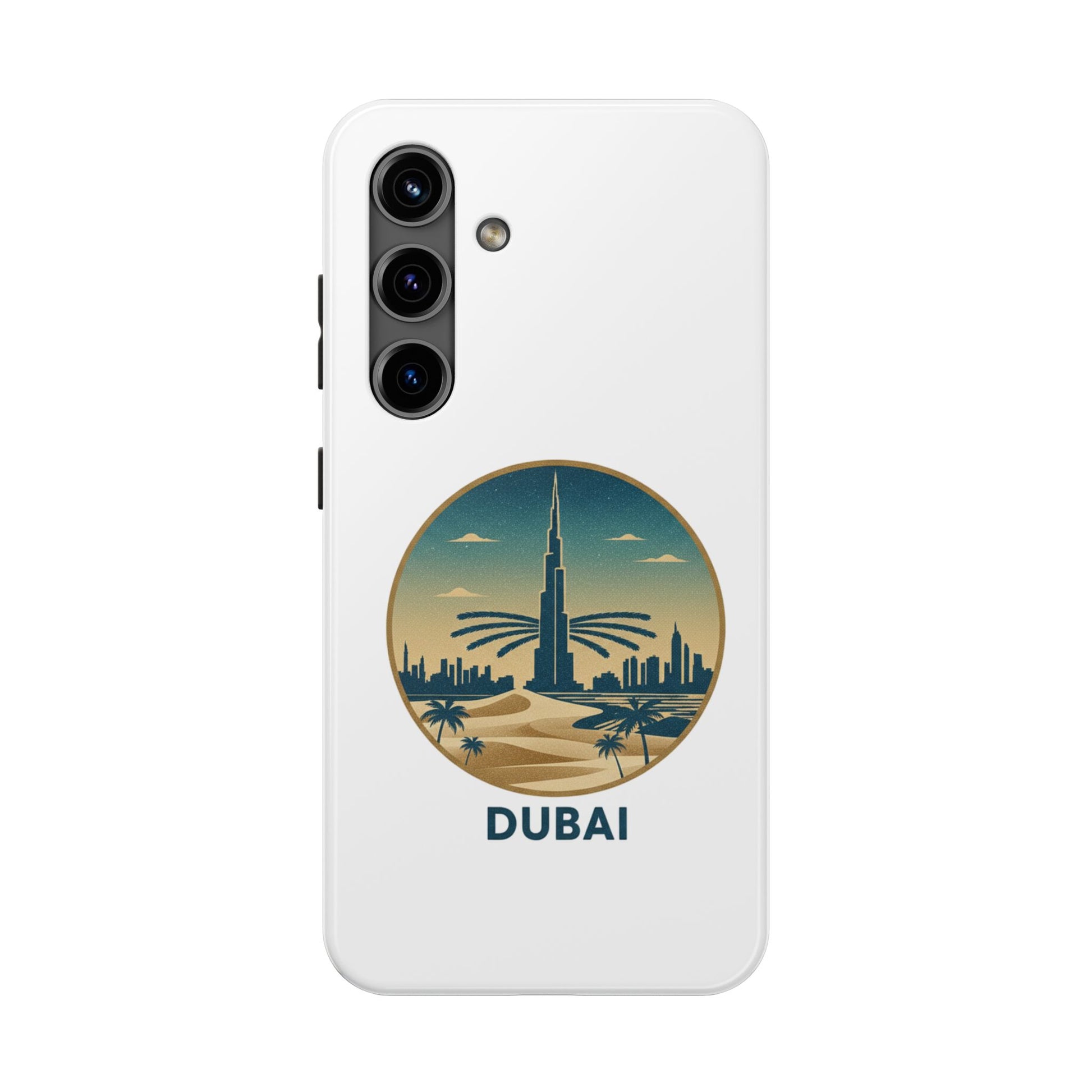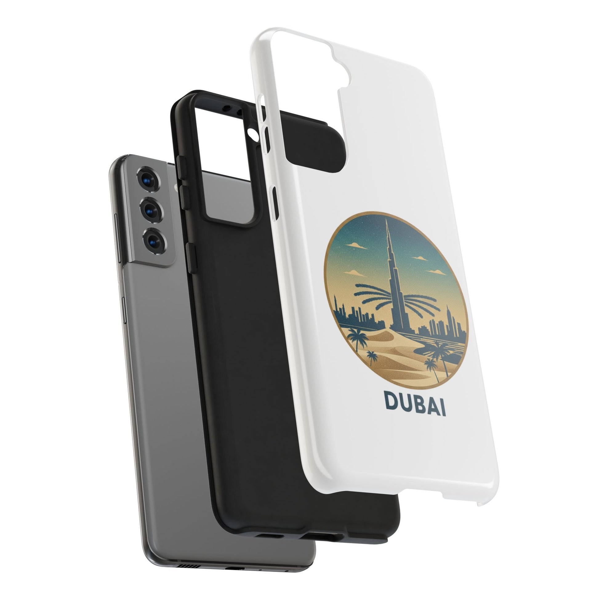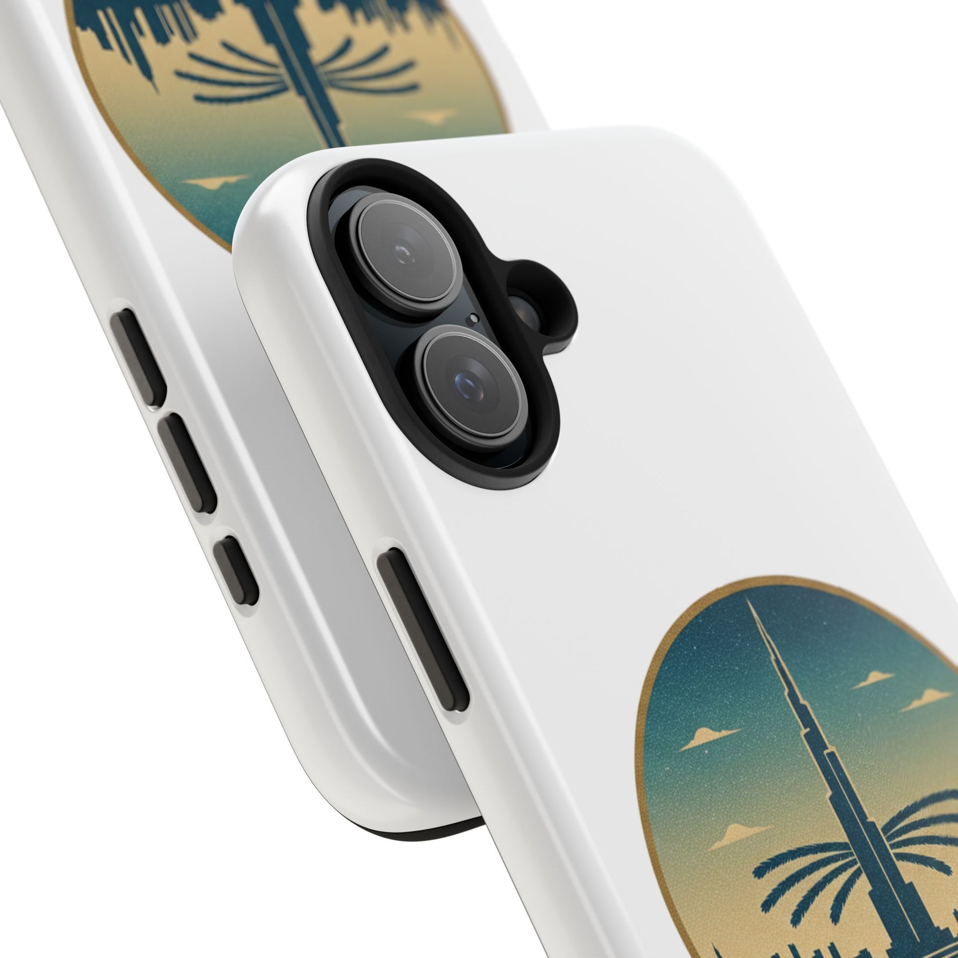 Coque de téléphone résistante motif skyline de Dubaï — Étui de voyage rétro palmiers du désert