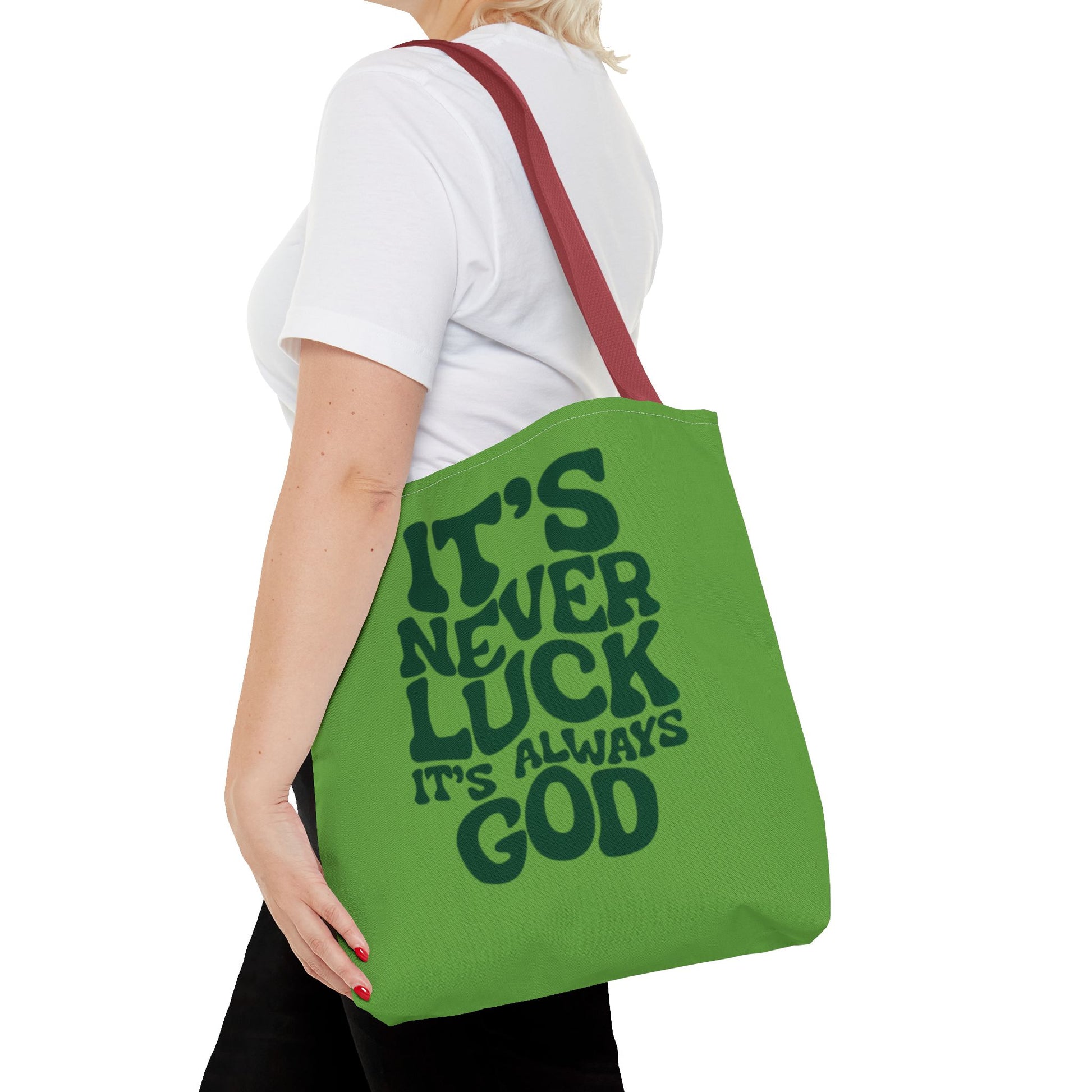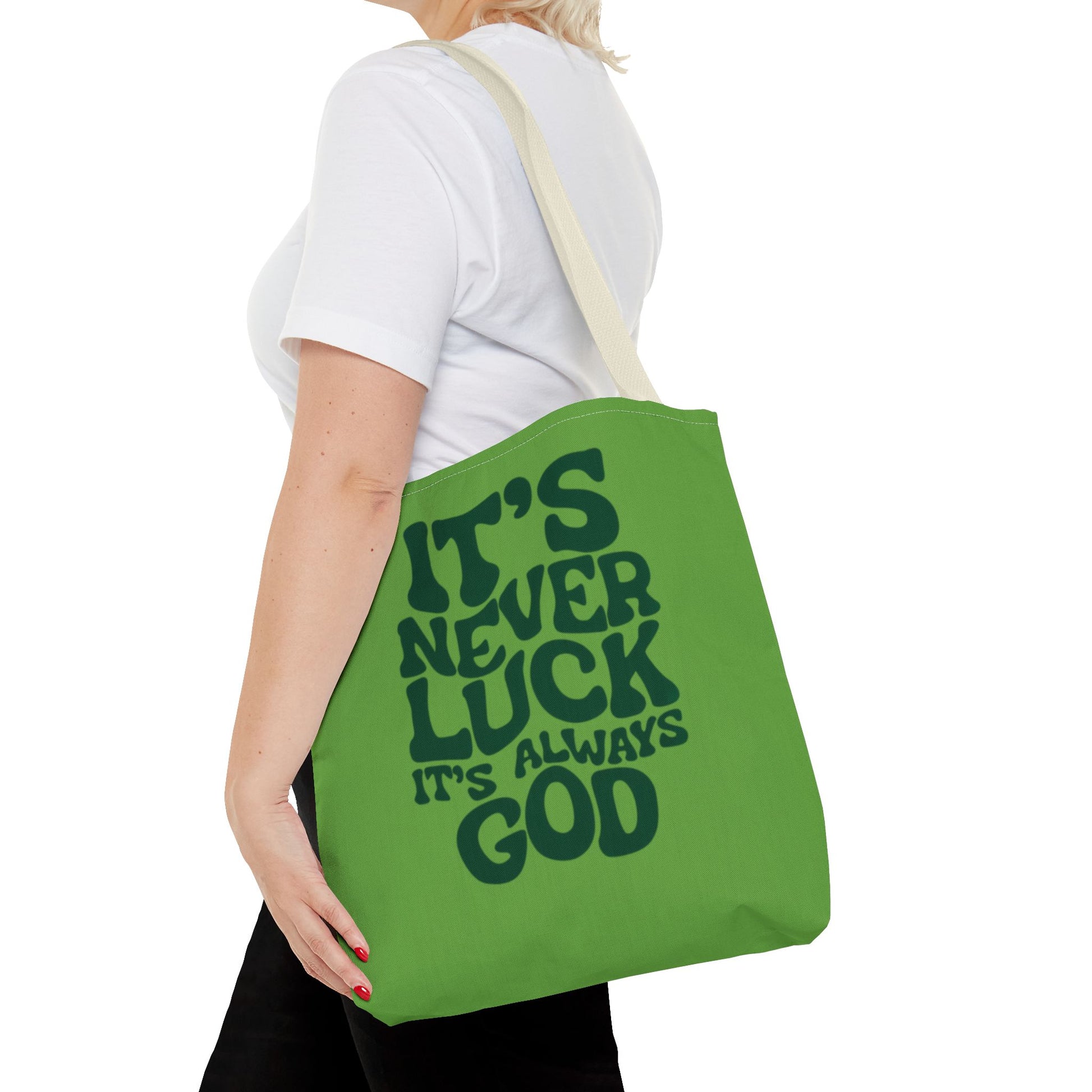 Faith Quote Tote Bag — "It's Never Luck, It's Always God" Cotton Tote