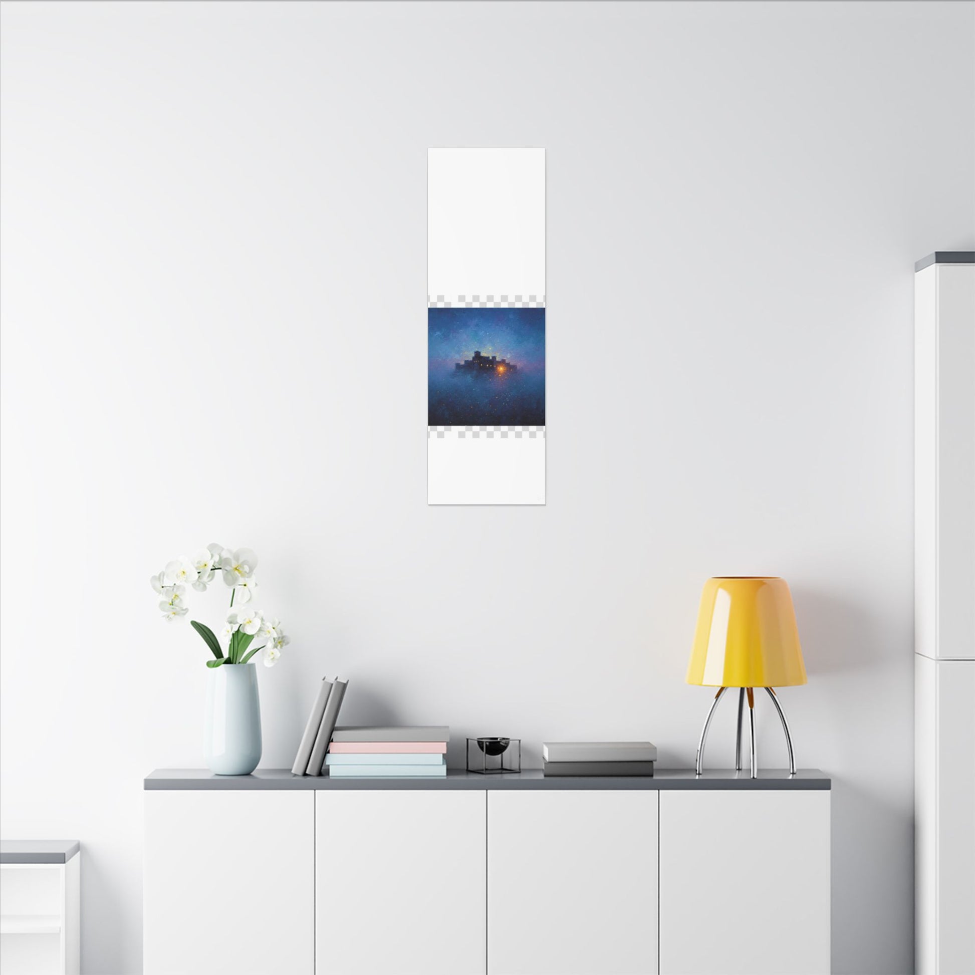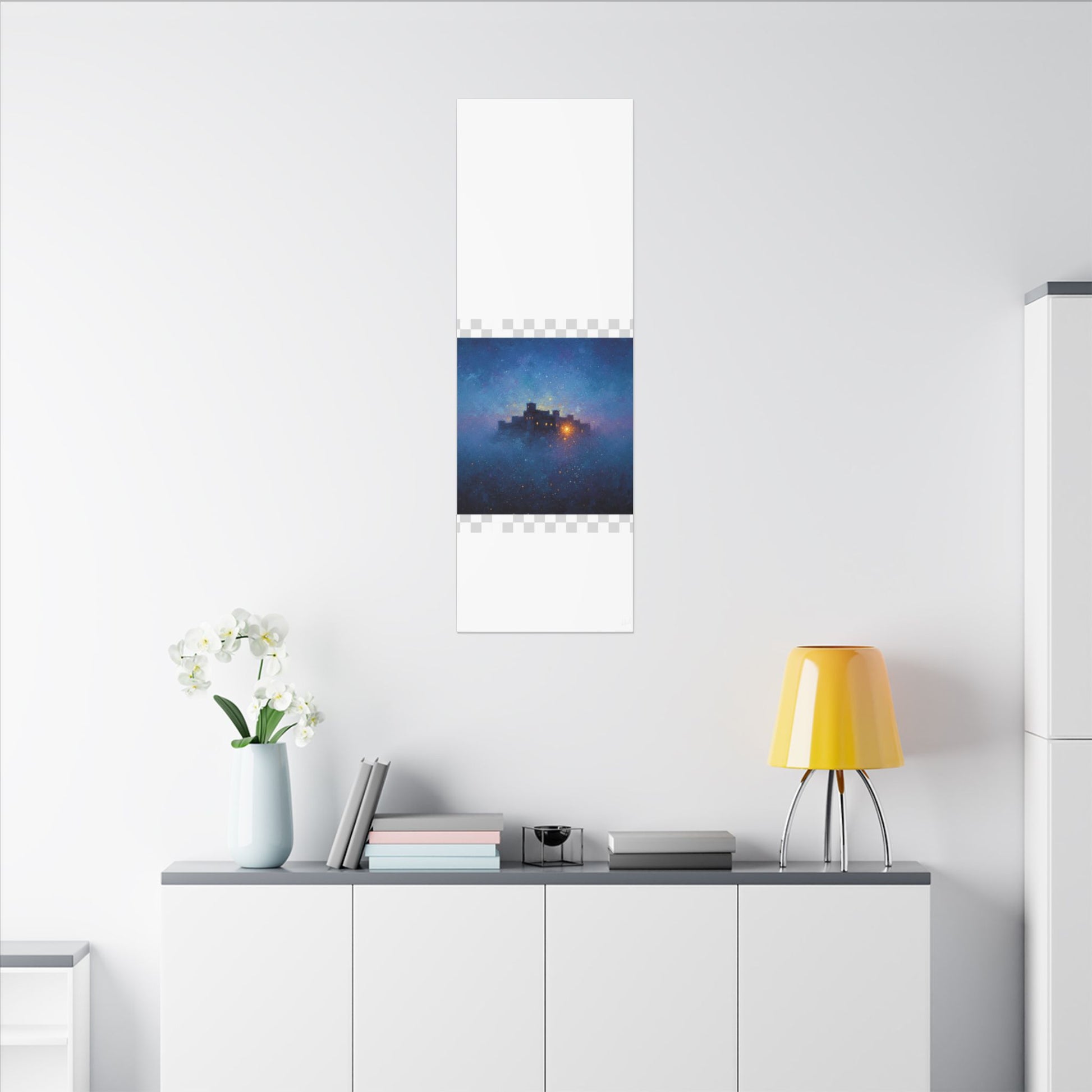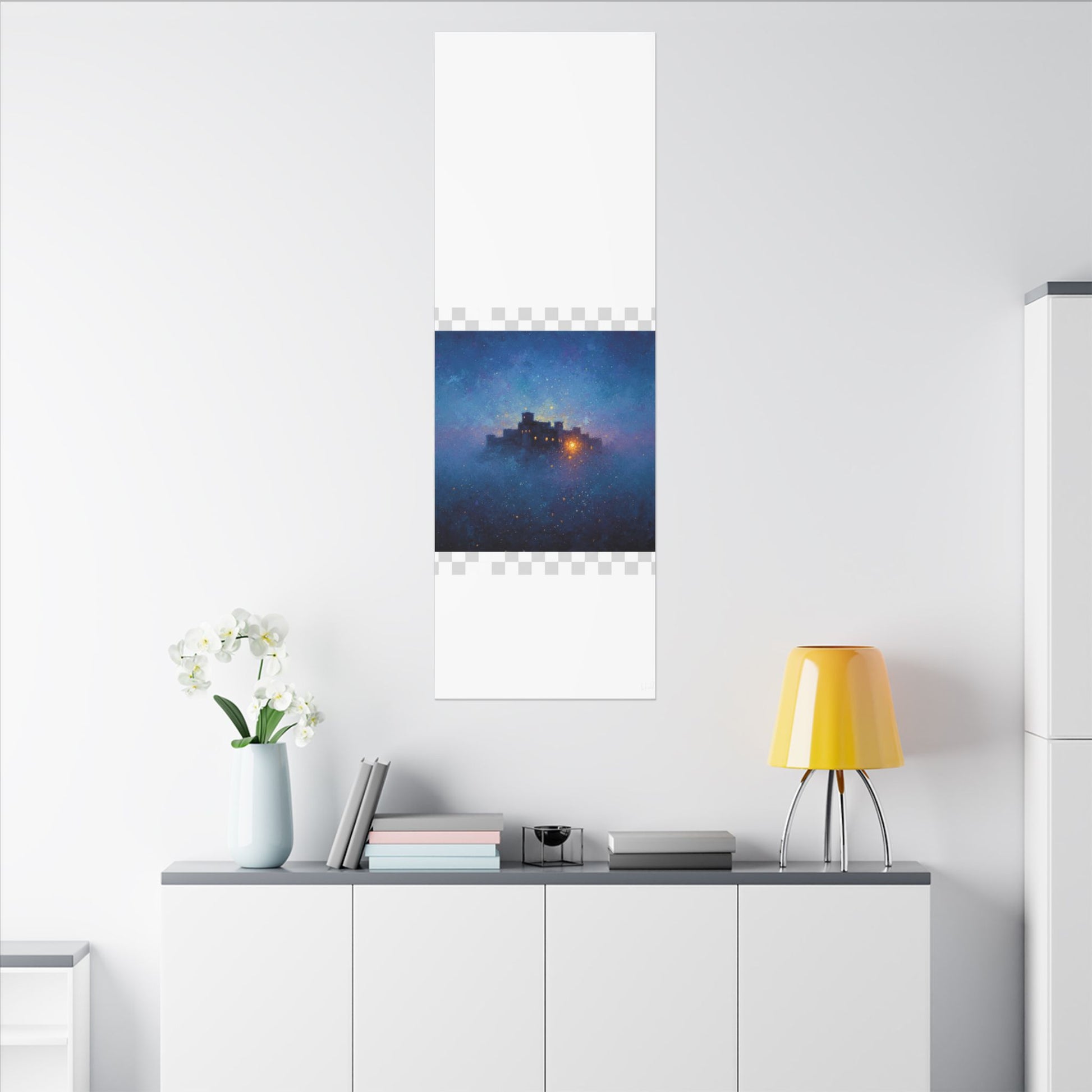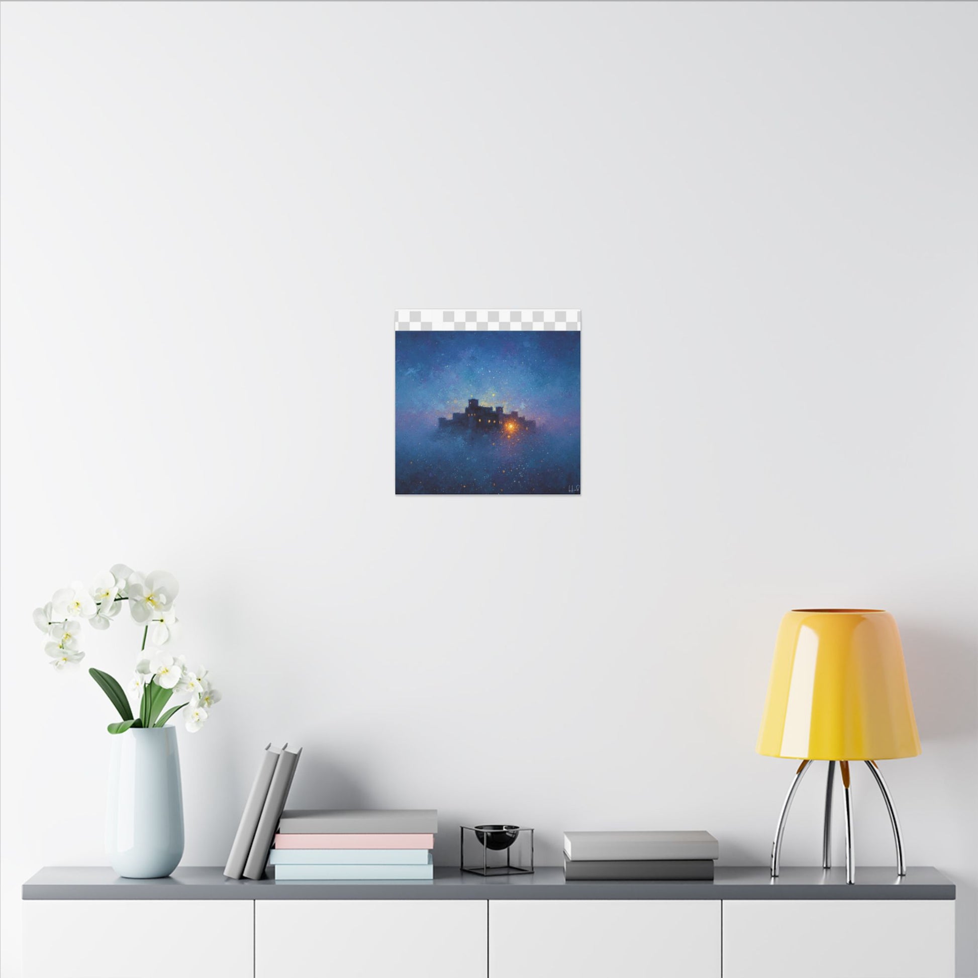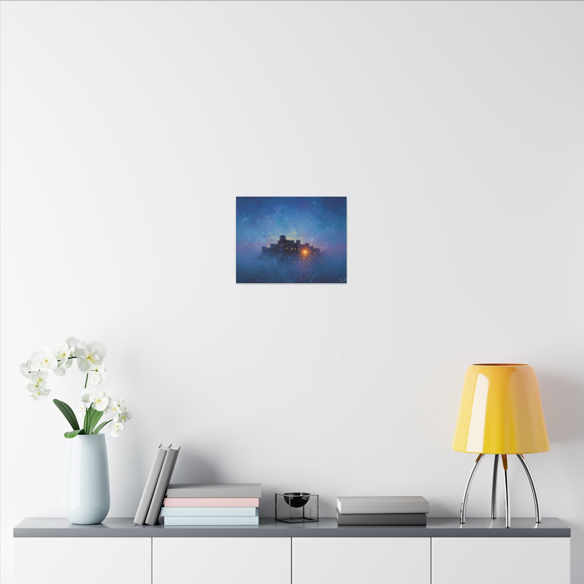 Une toile mate tendue qui transporte un ciel étoilé et paisible sur vos murs. Des bleus profonds et des violets doux parcourent sa surface, encadrant une citadelle lointaine et lumineuse dont la douce lueur évoque histoires, réconfort et abri. La finition mate texturée atténue les reflets et laisse s'exprimer les détails picturaux et les subtiles concrétions étoilées. Légère et robuste, elle est livrée prête à être accrochée et crée une ambiance contemplative et cinématographique dans les chambres, les coins lecture et les salons.