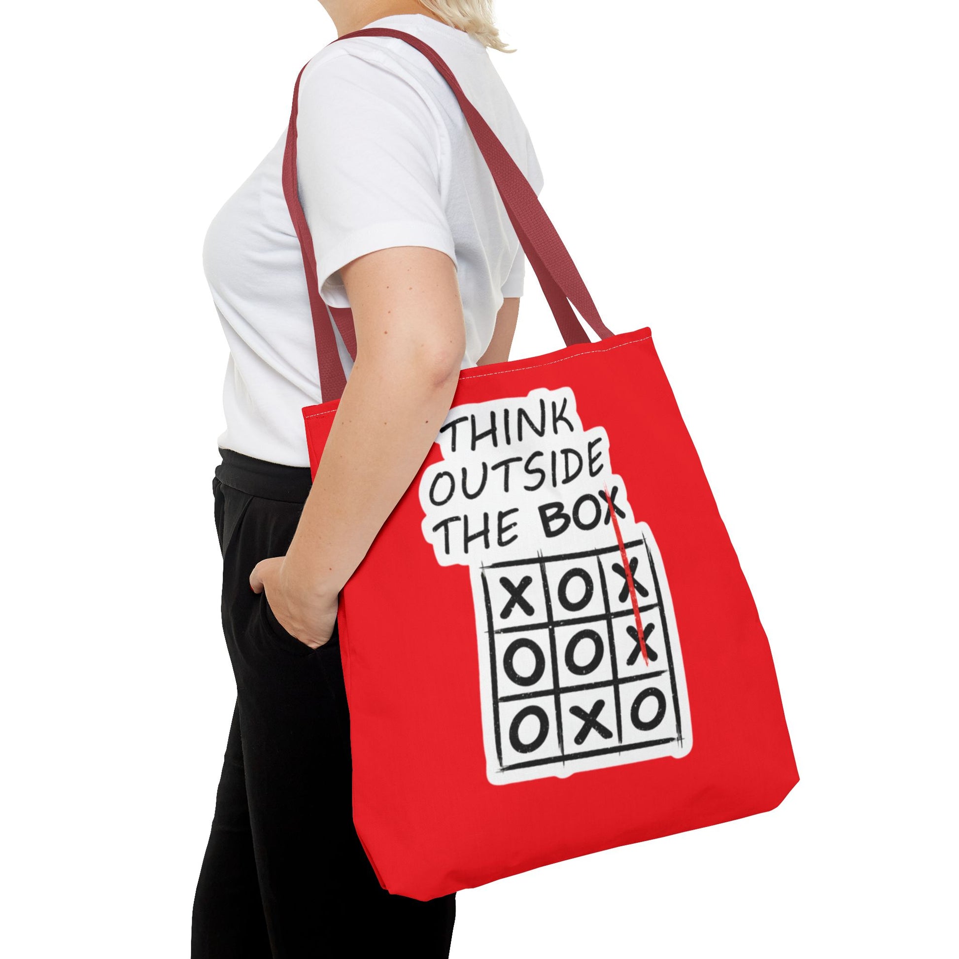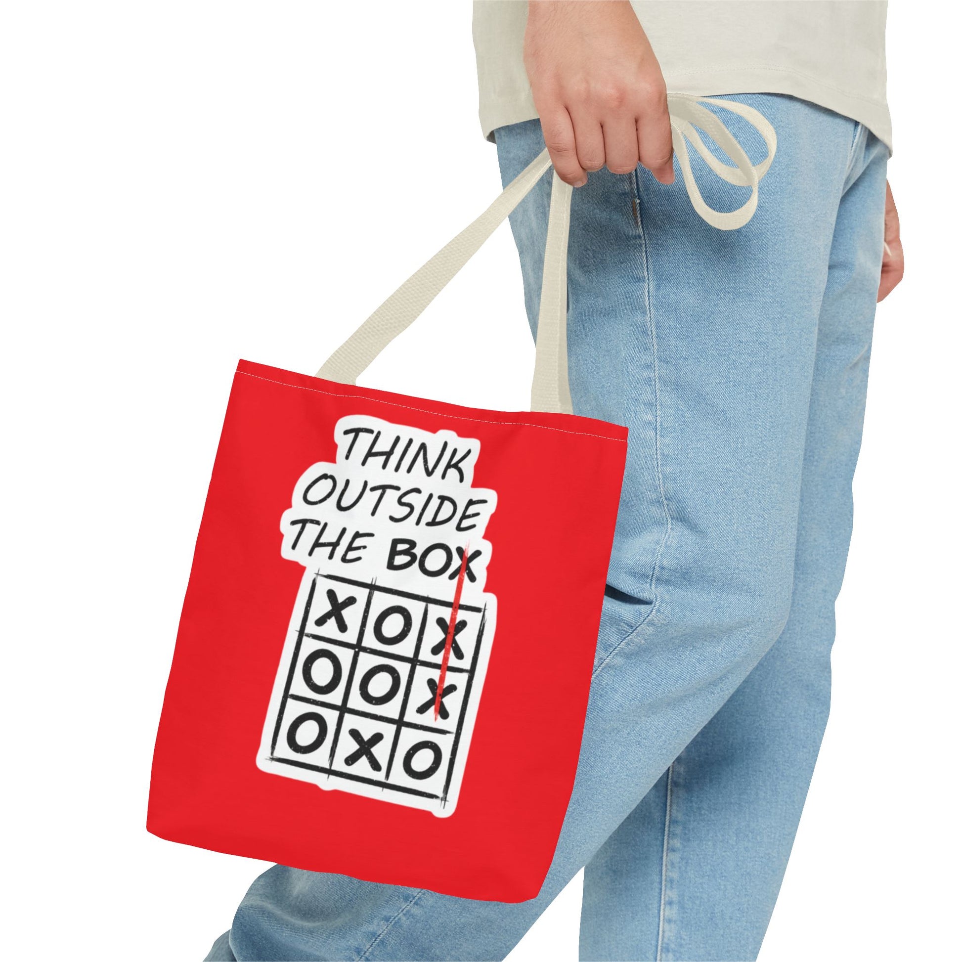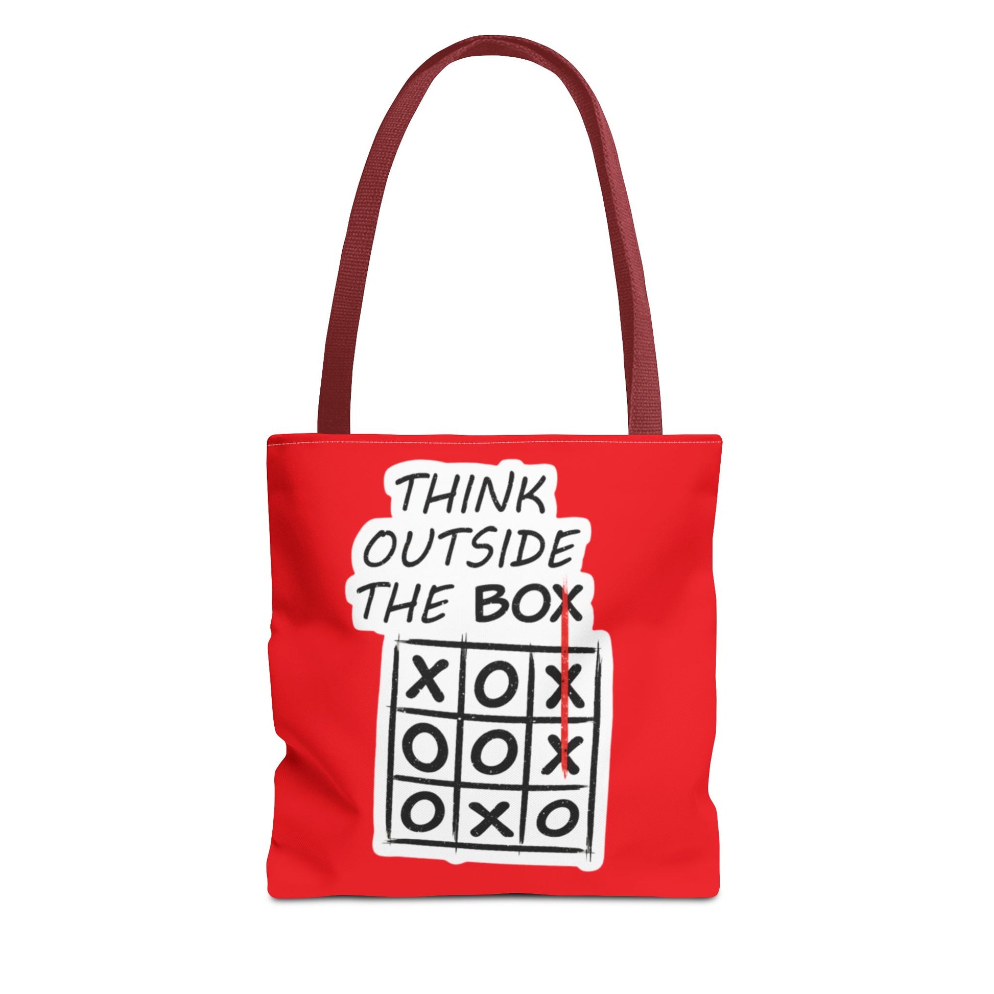 Think Outside the Box Tote Bag — Red Tic-Tac-Toe Motivational Canvas Tote