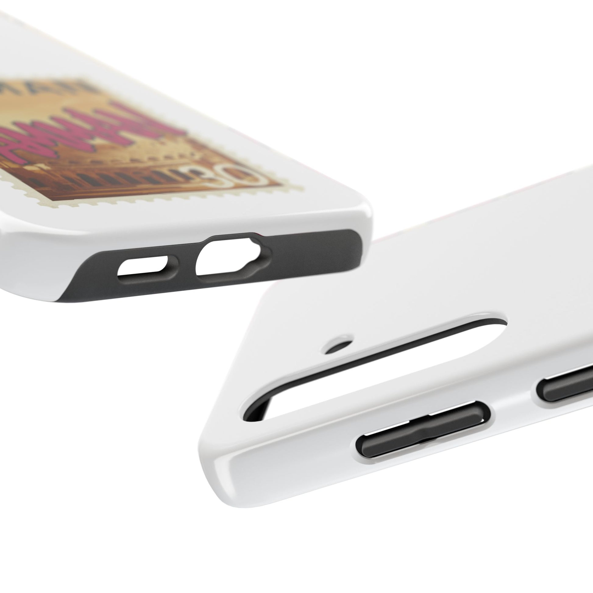 Carry a little piece of Amman with you — a phone case that feels like a stamped memory from the White City. The design blends a vintage postage-stamp frame with a bold, hand-lettered Amman in warm, sun-baked tones over a photographic hint of the city’s architecture. It’s tactile where it counts: a glossy finish makes the artwork pop, while an interior rubber liner and two-piece shell soften shocks and protect edges. Lightweight and slim, it slides in and out of pockets but stands up to everyday knocks and outdoor wear. For those who travel often, who grew up with these streets, or who simply want a subtle reminder of Jordan’s capital — this case keeps that connection close and visible every day.