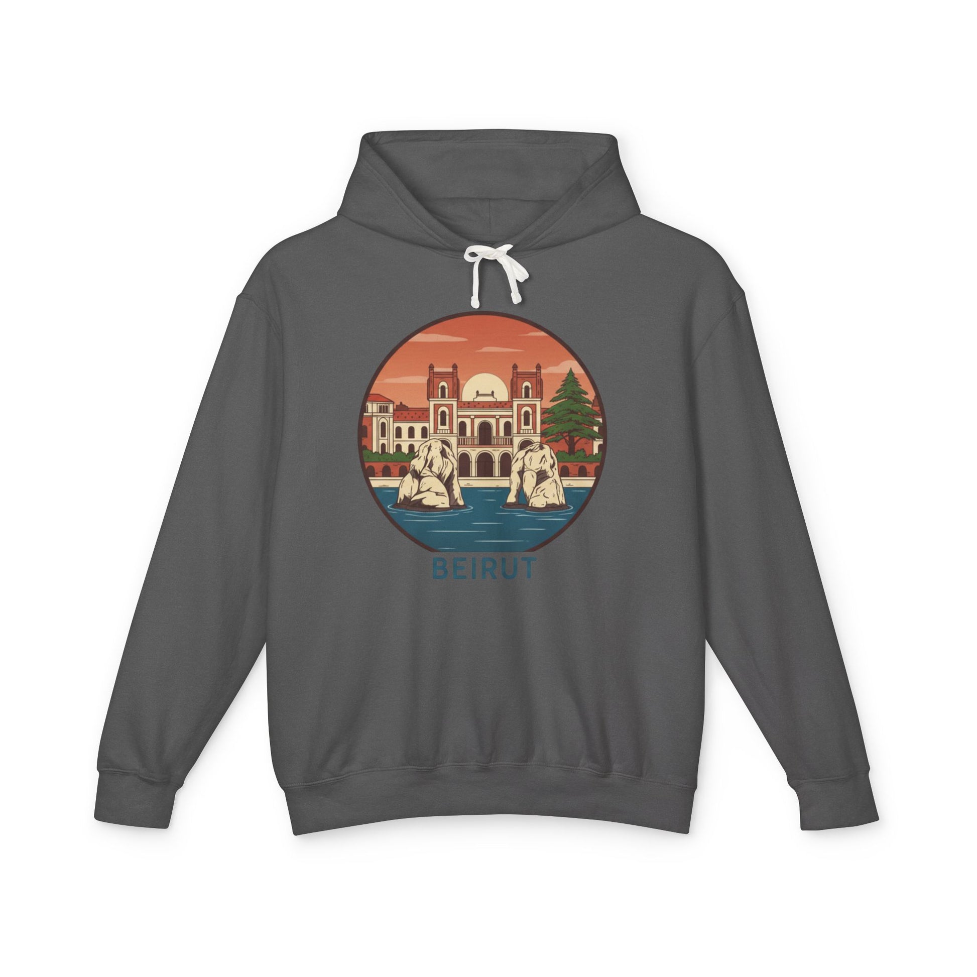 Beirut Vintage Landmark Hoodie — Retro Cityscape Graphic Hooded Sweatshirt