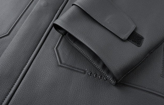 Avoid machine washing. Wipe with a soft dry cloth, keep it away from heat and direct sun, and store it on a wide hanger. Use leather conditioner occasionally for long term care.