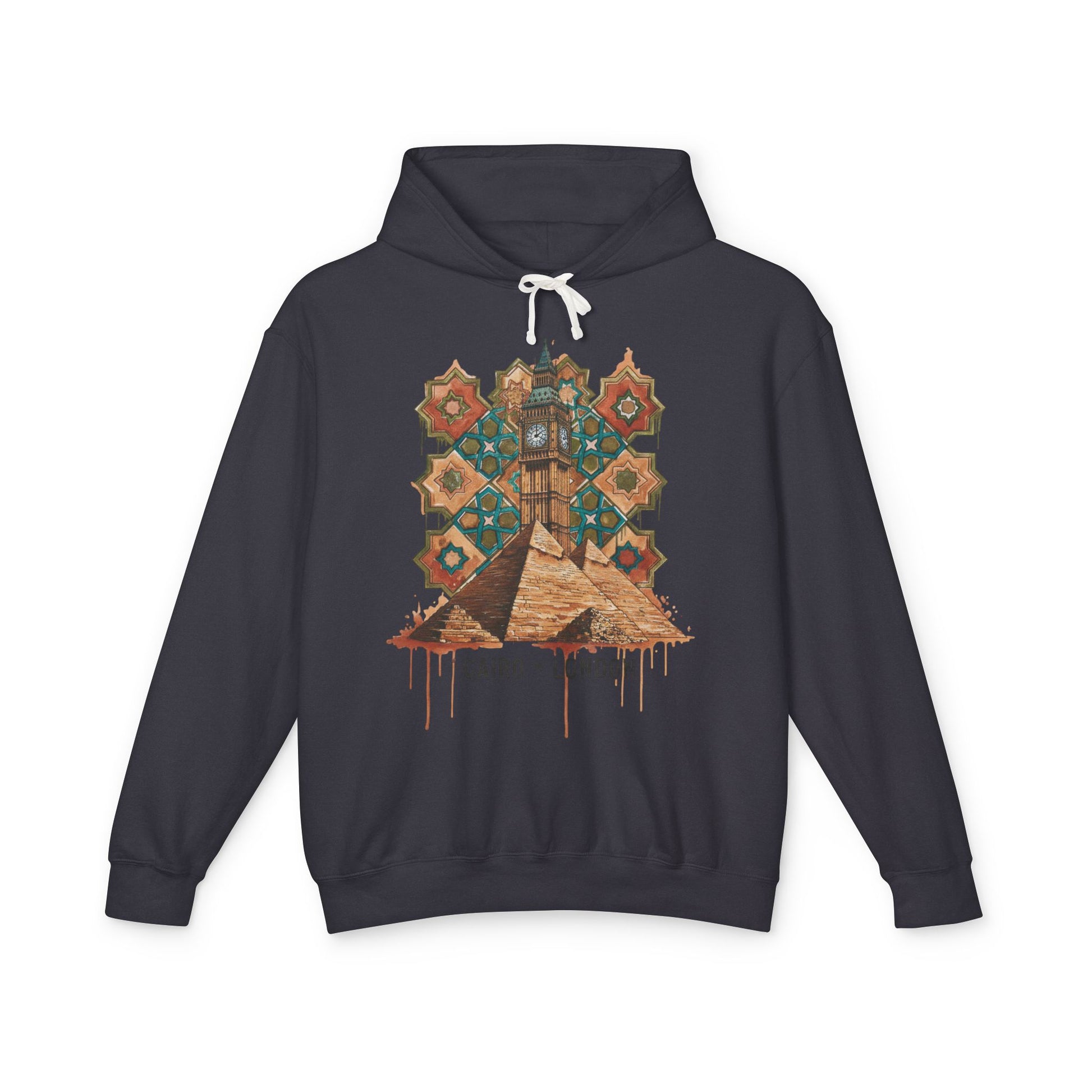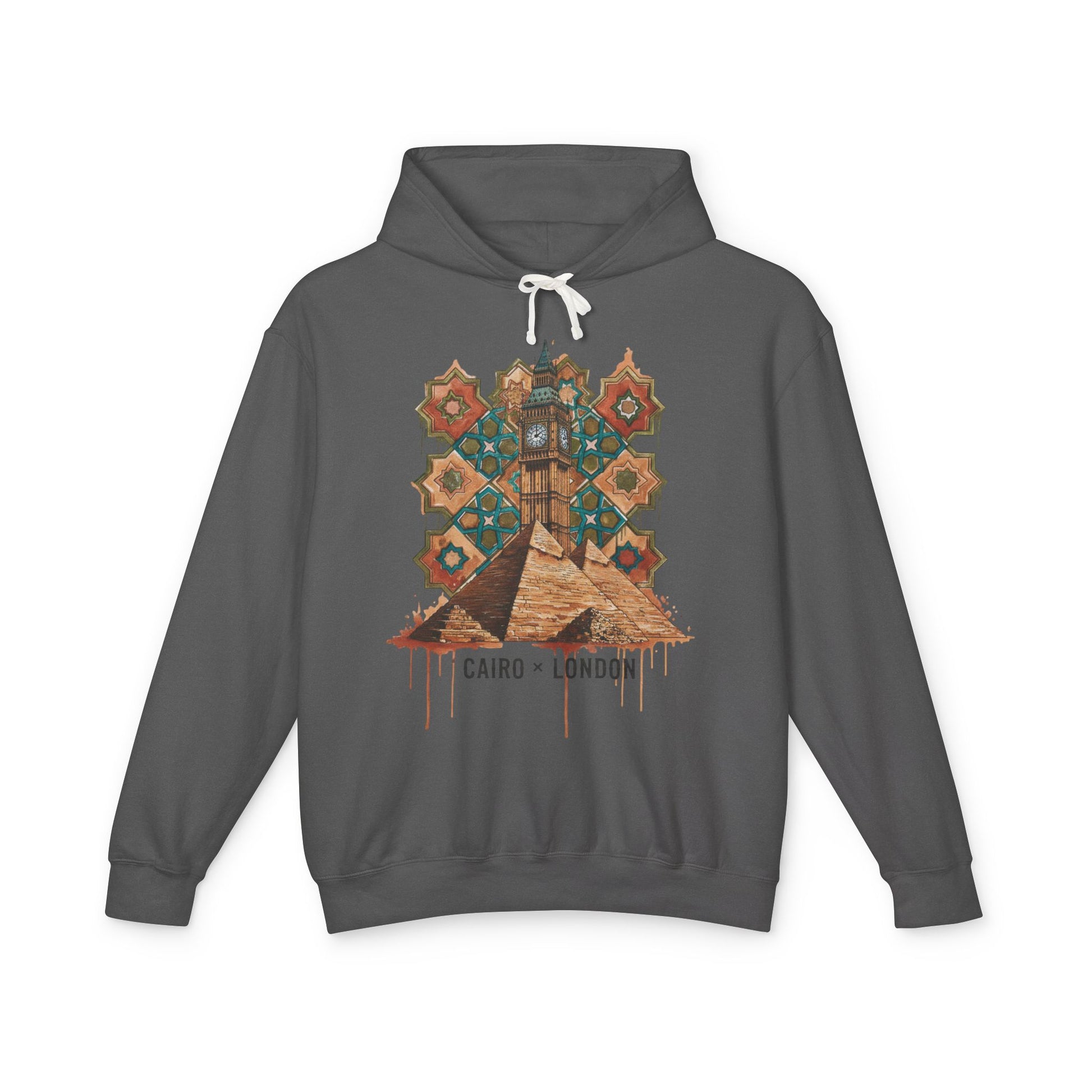Cairo to London Vintage Pyramid Hoodie — Travel & Retro Mosaic Graphic