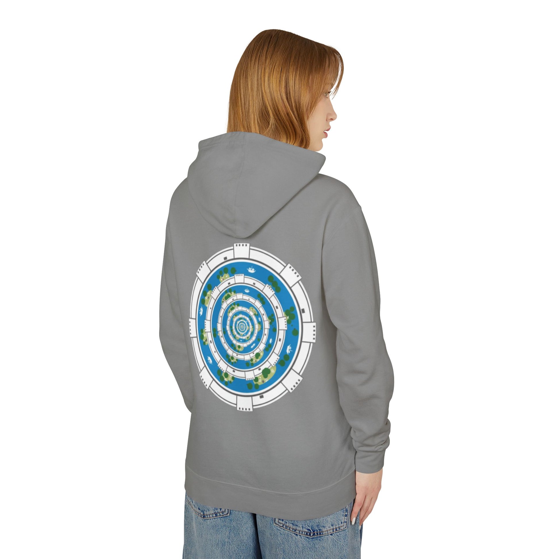 Circular World Map Hoodie — Planet Orbit Graphic Lightweight Hooded Sweatshirt