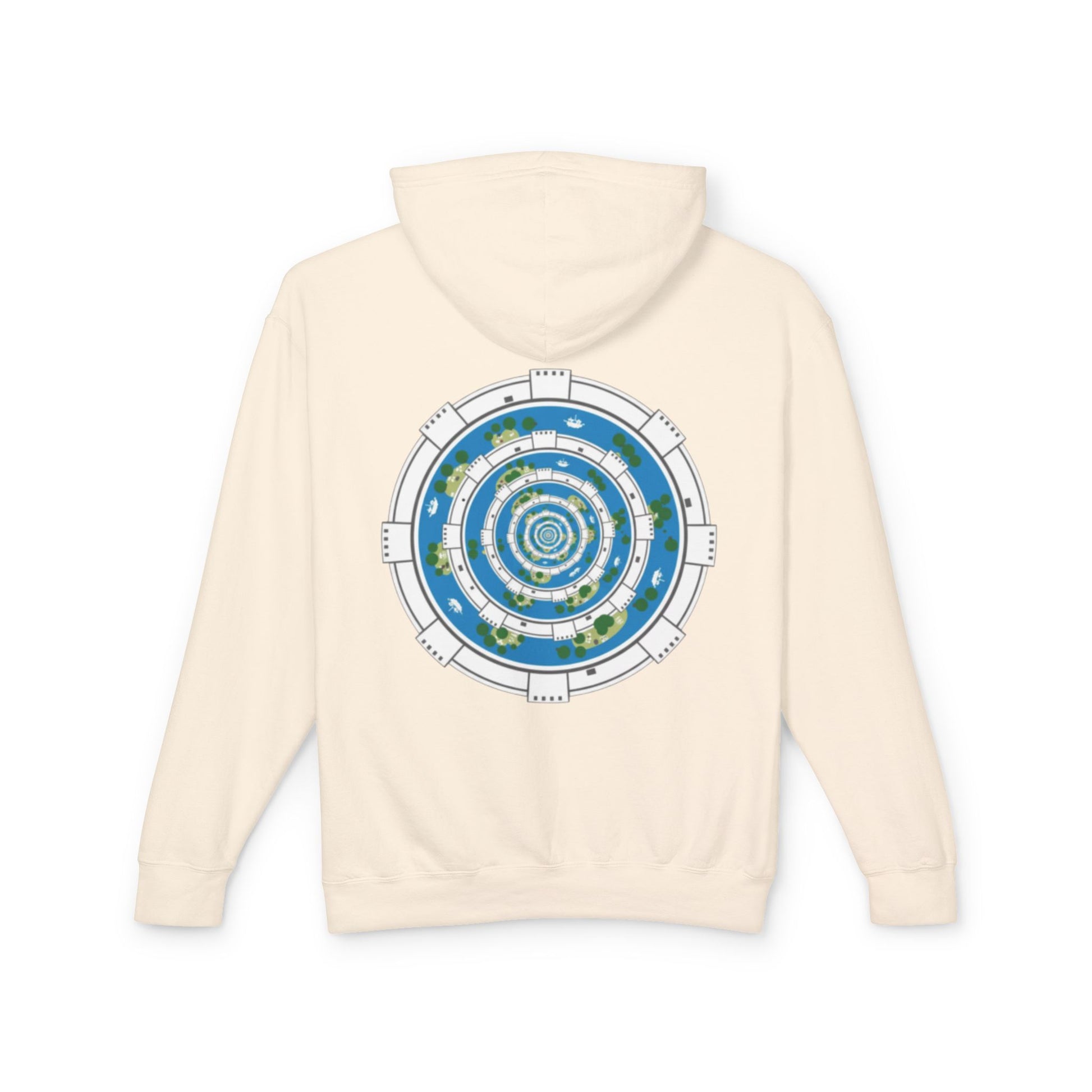 Soft, breathable, and quietly striking — this lightweight hooded sweatshirt feels like a familiar morning. The natural-cream fabric and jersey-lined hood keep the look calm and wearable, while the circular, map-like graphic on the back adds a playful, thoughtful edge. Wear it on slow weekend walks, late-afternoon coffee runs, or when you’re sketching ideas at your favorite studio. The relaxed cut and rolled-forward shoulders let you move without fuss. It’s for those who prefer subtle style with a bit of curiosity — gentle on the skin, gentle on the planet.