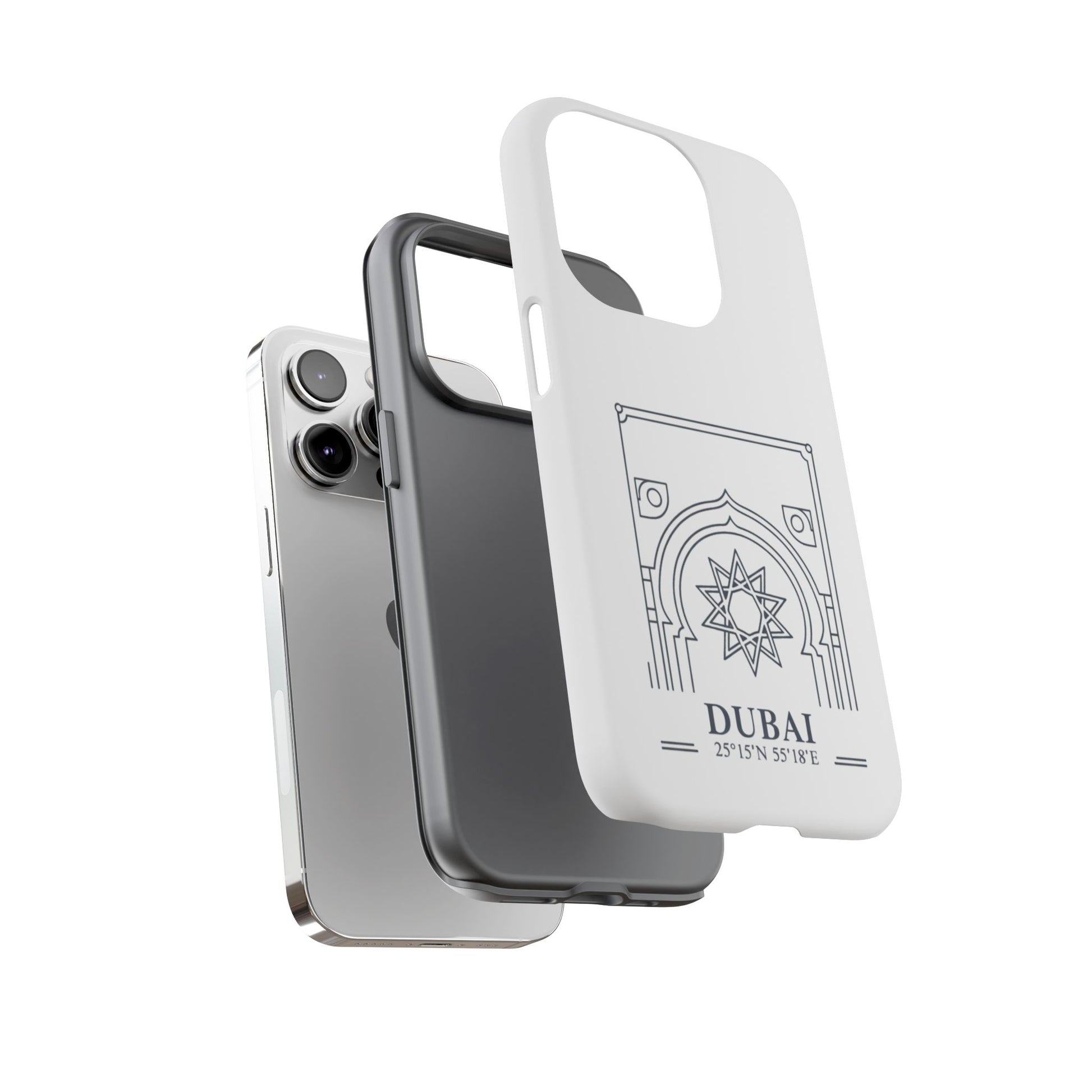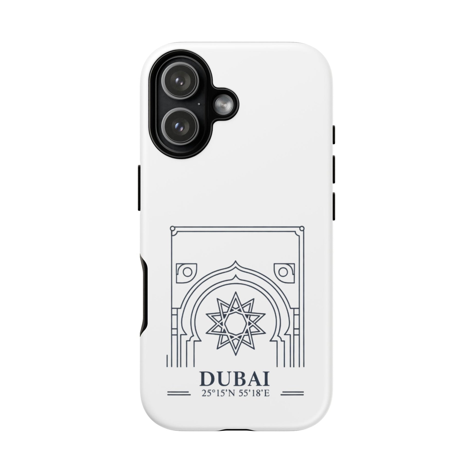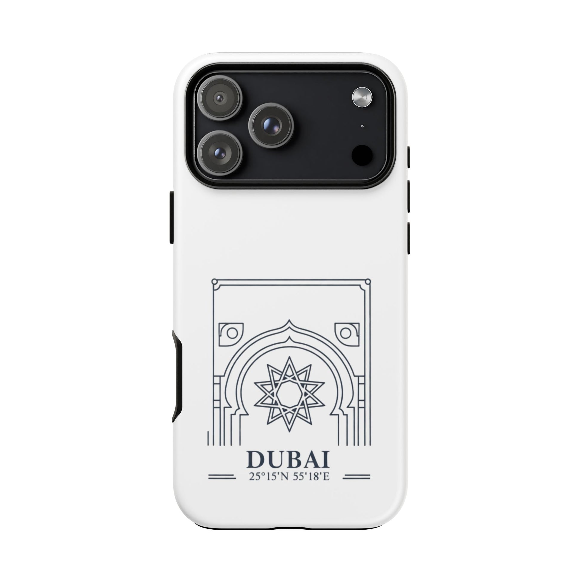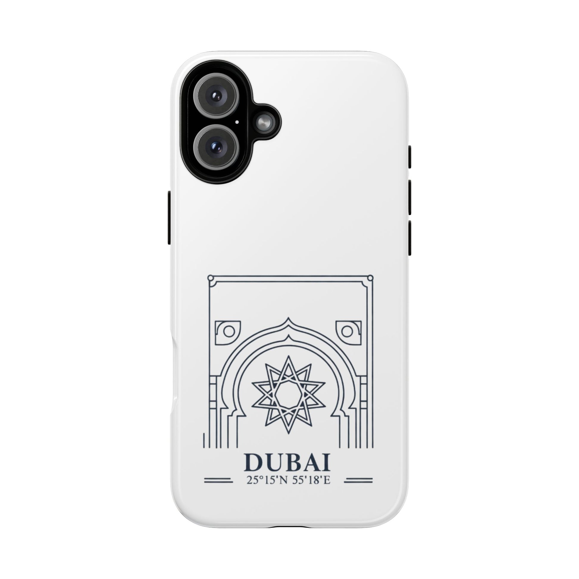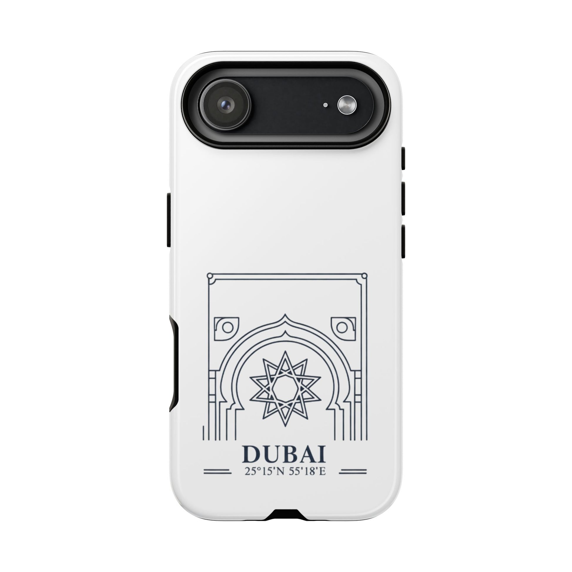 Dubai Architectural Phone Case — Minimal Souvenir Travel Design with Coordinates