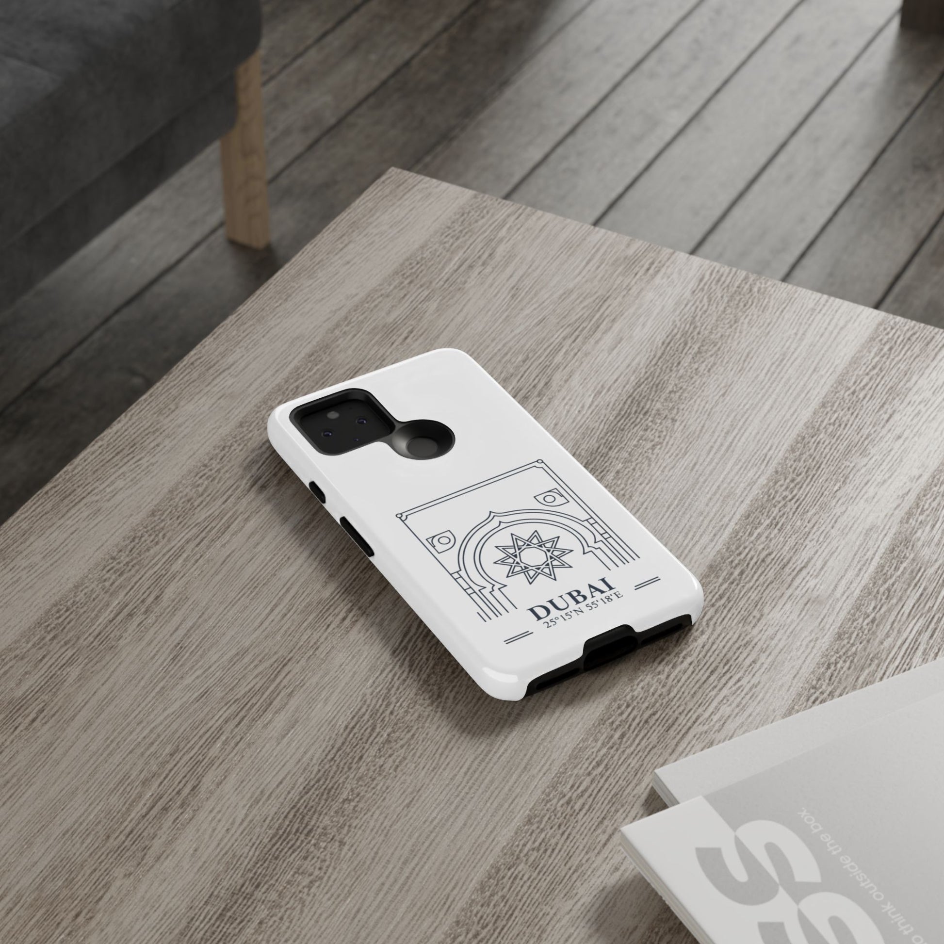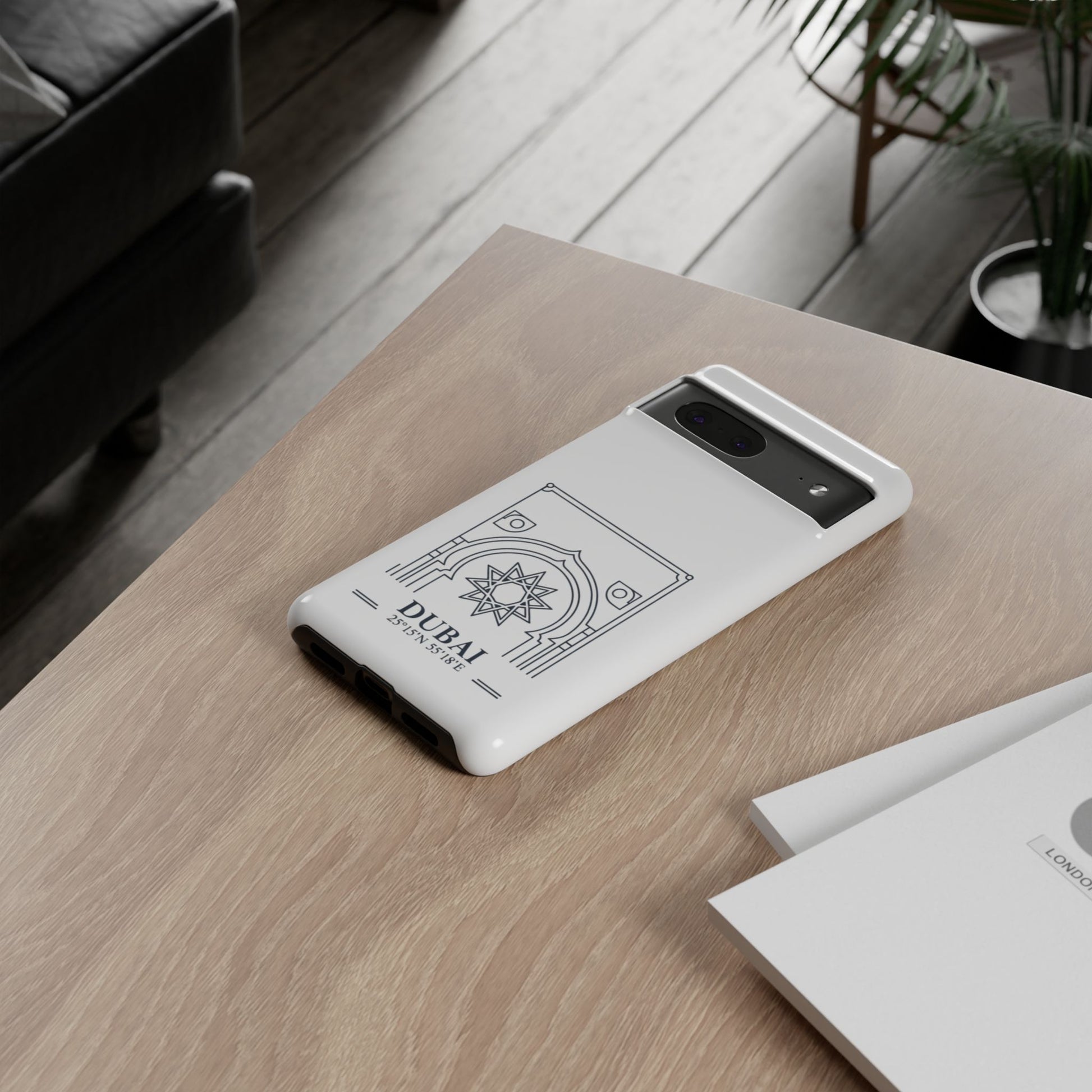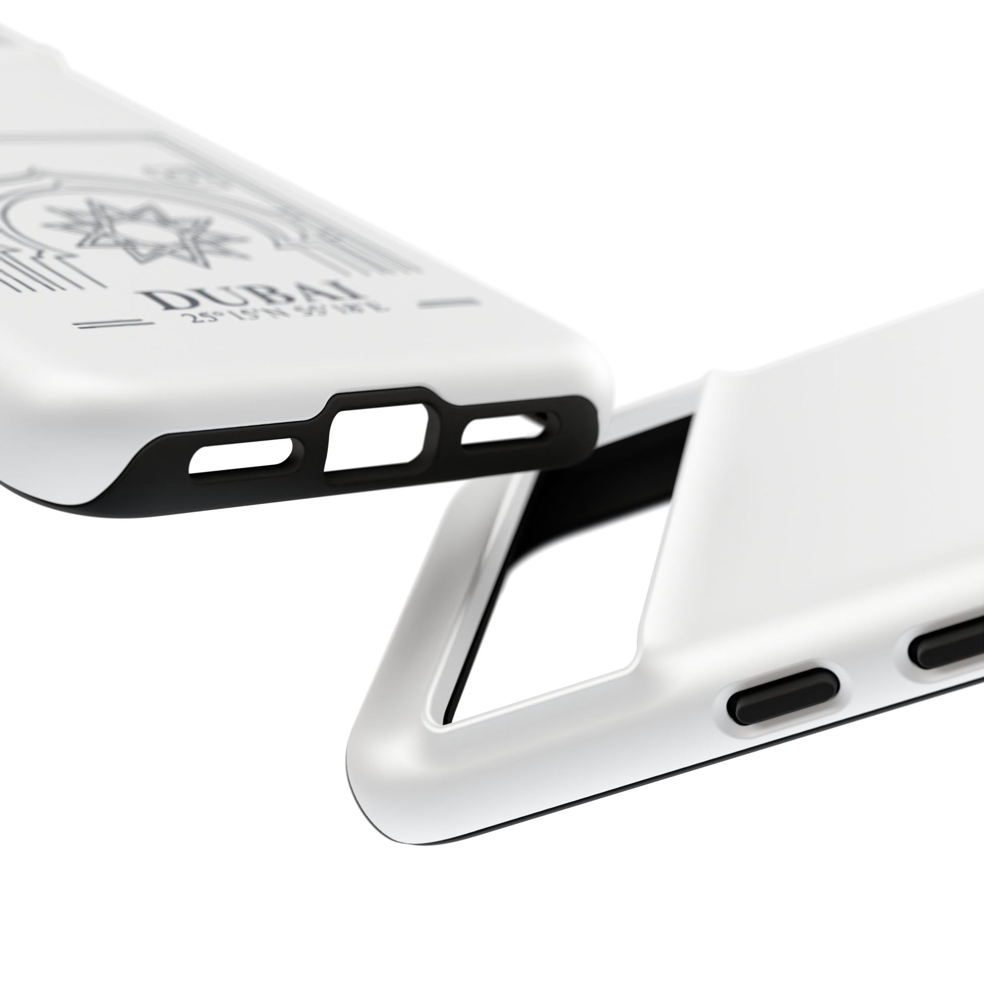 A slim, protective phone case that brings a quiet touch of Dubai’s architectural elegance to your daily carry. The dual-layer shell combines a glossy or matte finish with a soft TPU liner for shock absorption, while a subtle line-art arch and compass rose mark the city’s name and coordinates. Lightweight but impact-resistant, it guards your phone from drops and wear while keeping ports accessible and wireless charging supported. Built to withstand outdoor use with UV-protected printing and certified material safety, this case feels like a thoughtfully crafted everyday shield that recalls travel and place without shouting for attention.
