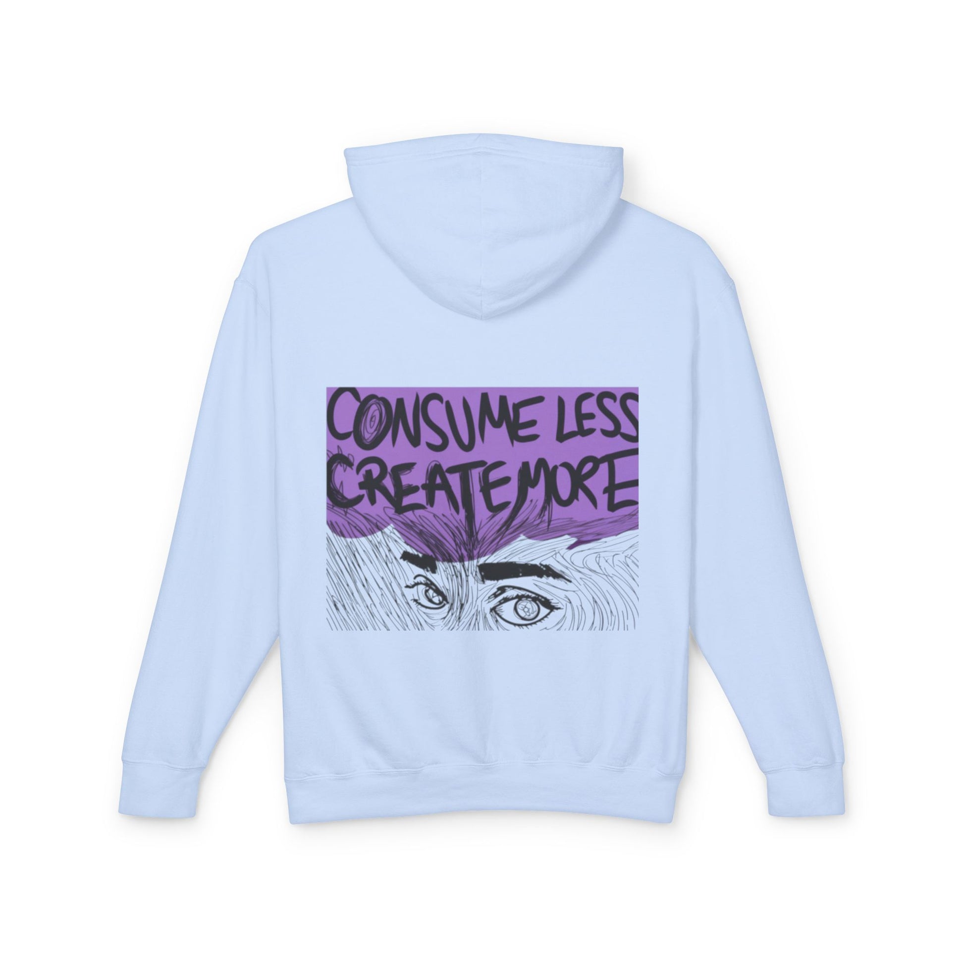 Hoodie — "Consume Less Create More" Art Print Lightweight Pullover