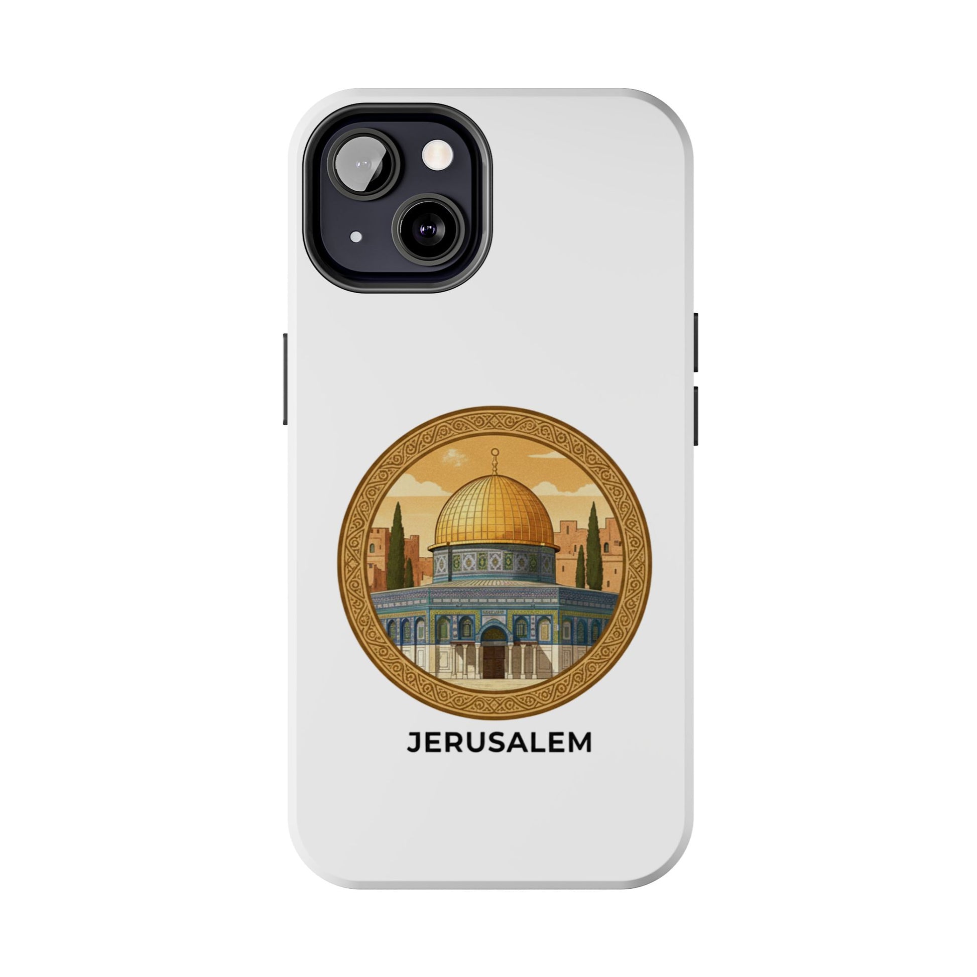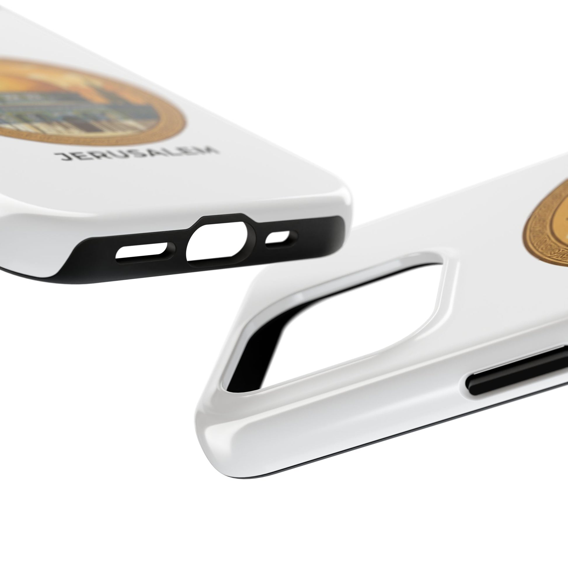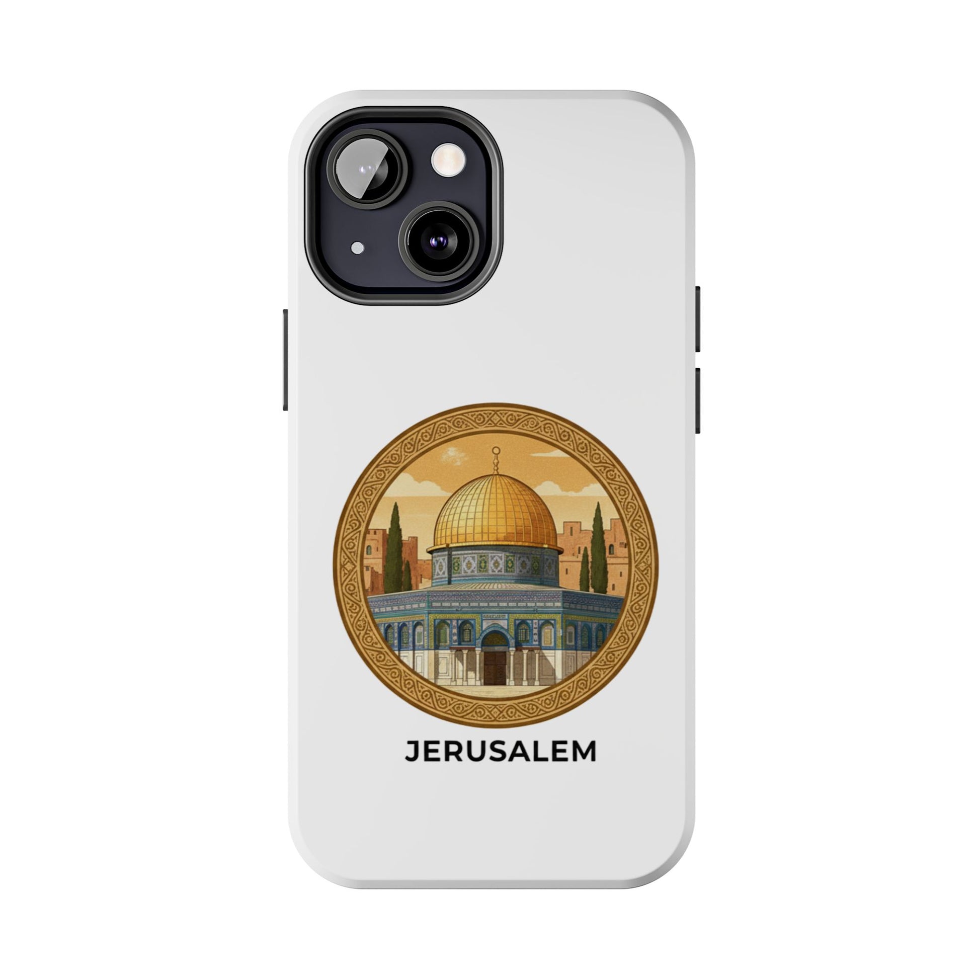 A protective phone case that carries the warm, storied light of Jerusalem wherever you go. The golden dome sits in a circular frame, rendered in soft vintage tones that feel like an old travel poster — calm, reverent, and quietly proud. The slim two-piece shell snaps around your phone while a flexible inner liner cushions against drops. The gloss finish makes the colors pop and holds up outdoors, so the illustration keeps its glow on daily commutes, temple visits, or quiet moments of reflection. It slips into a pocket easily, supports wireless charging, and adds a personal, meaningful touch to everyday life for someone who loves this city and what it represents.