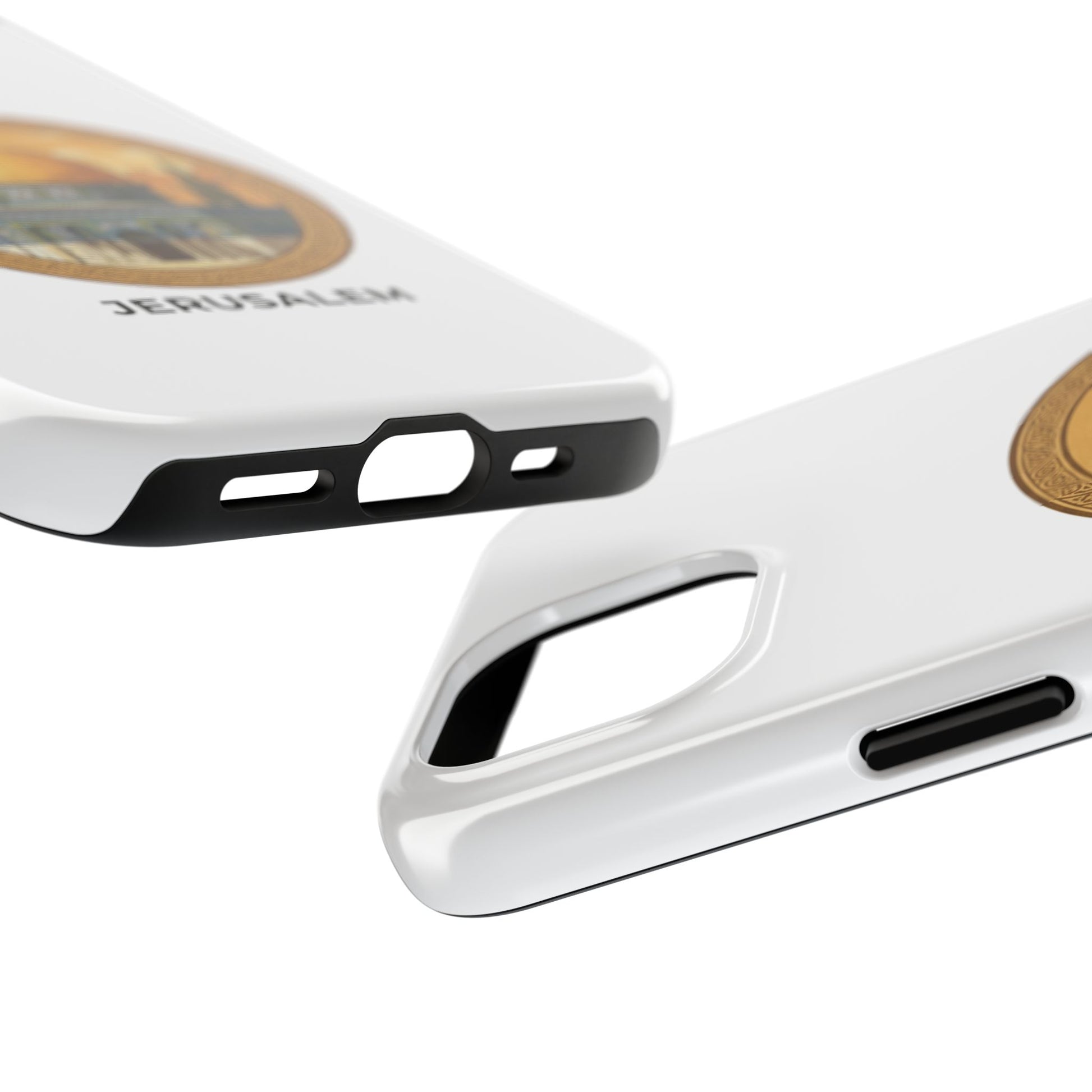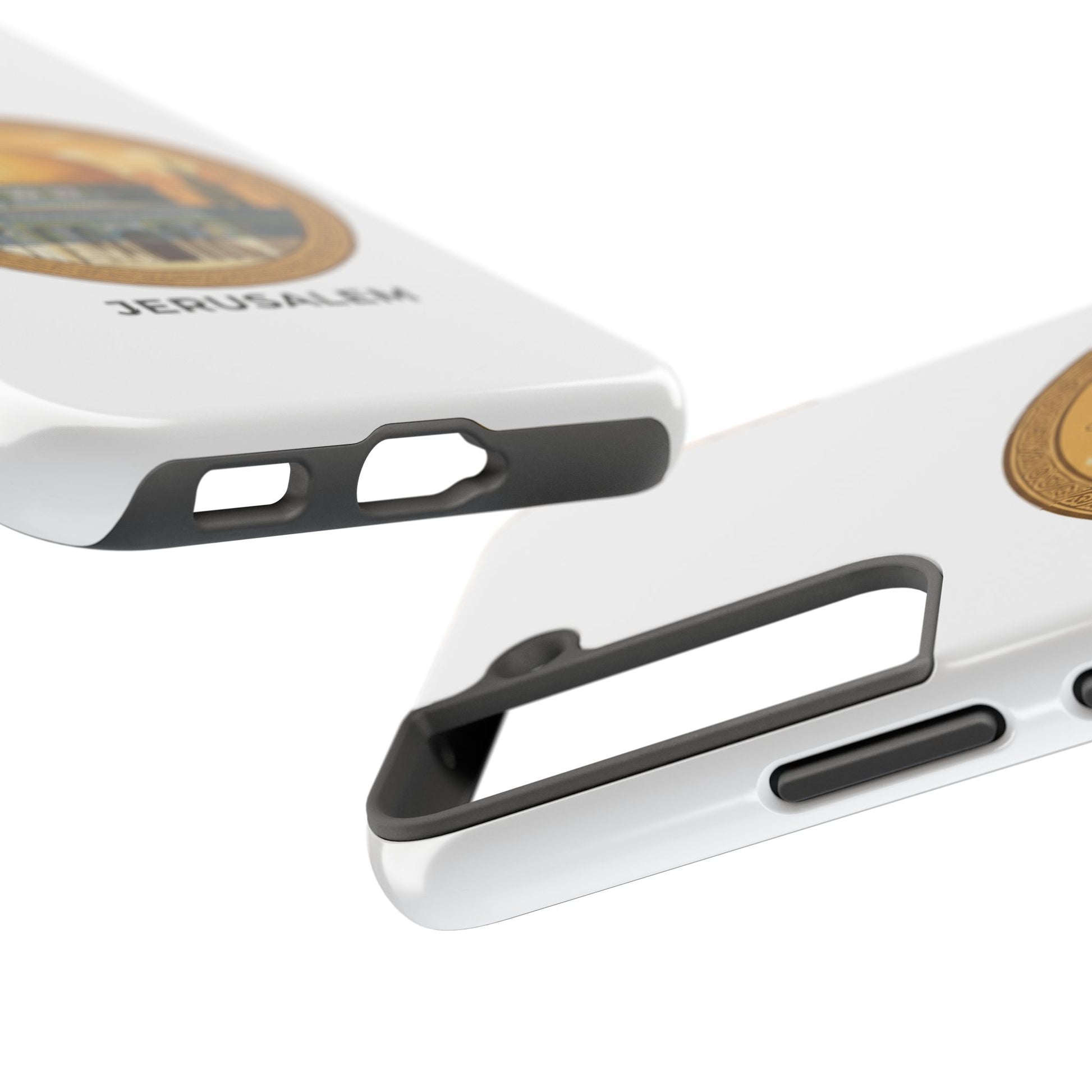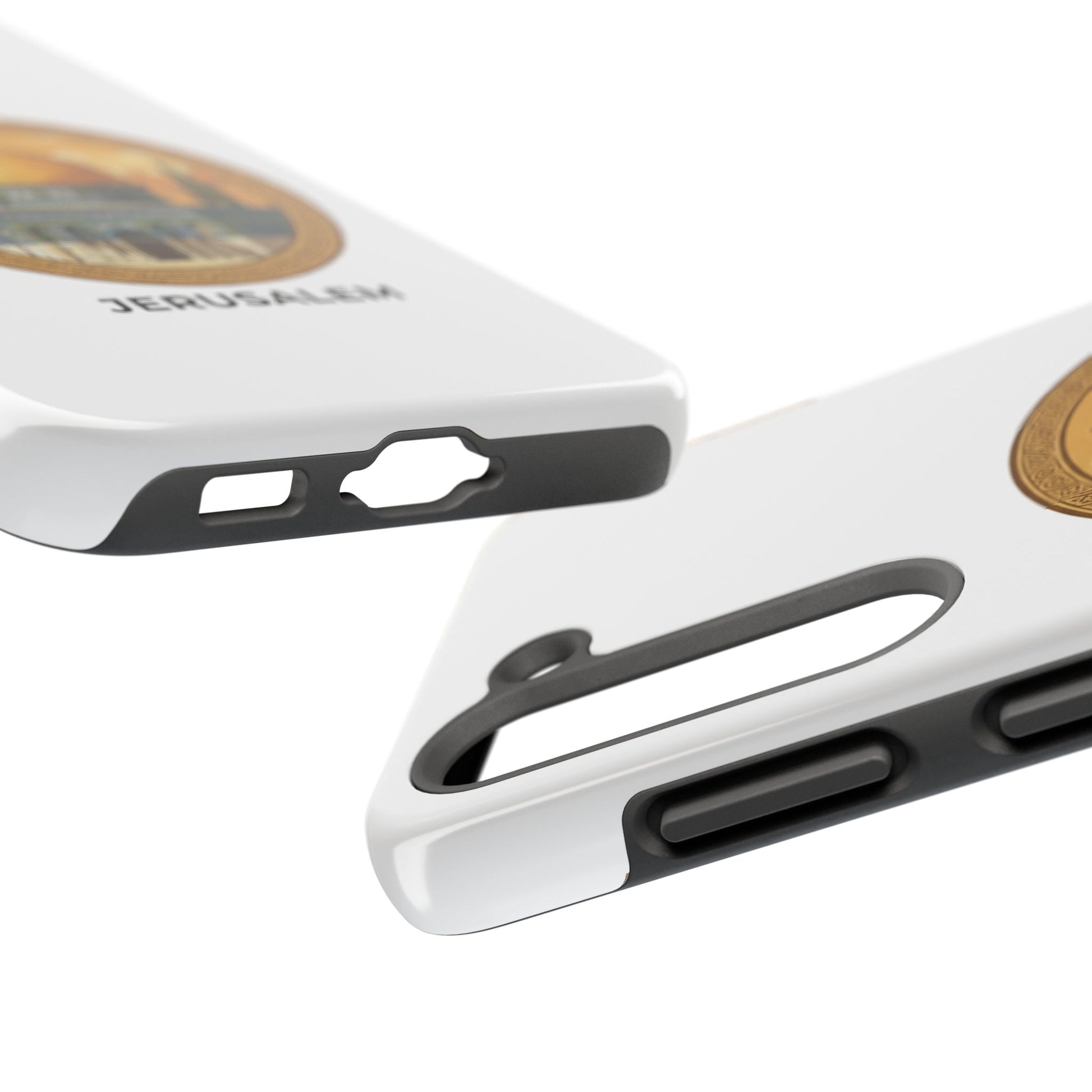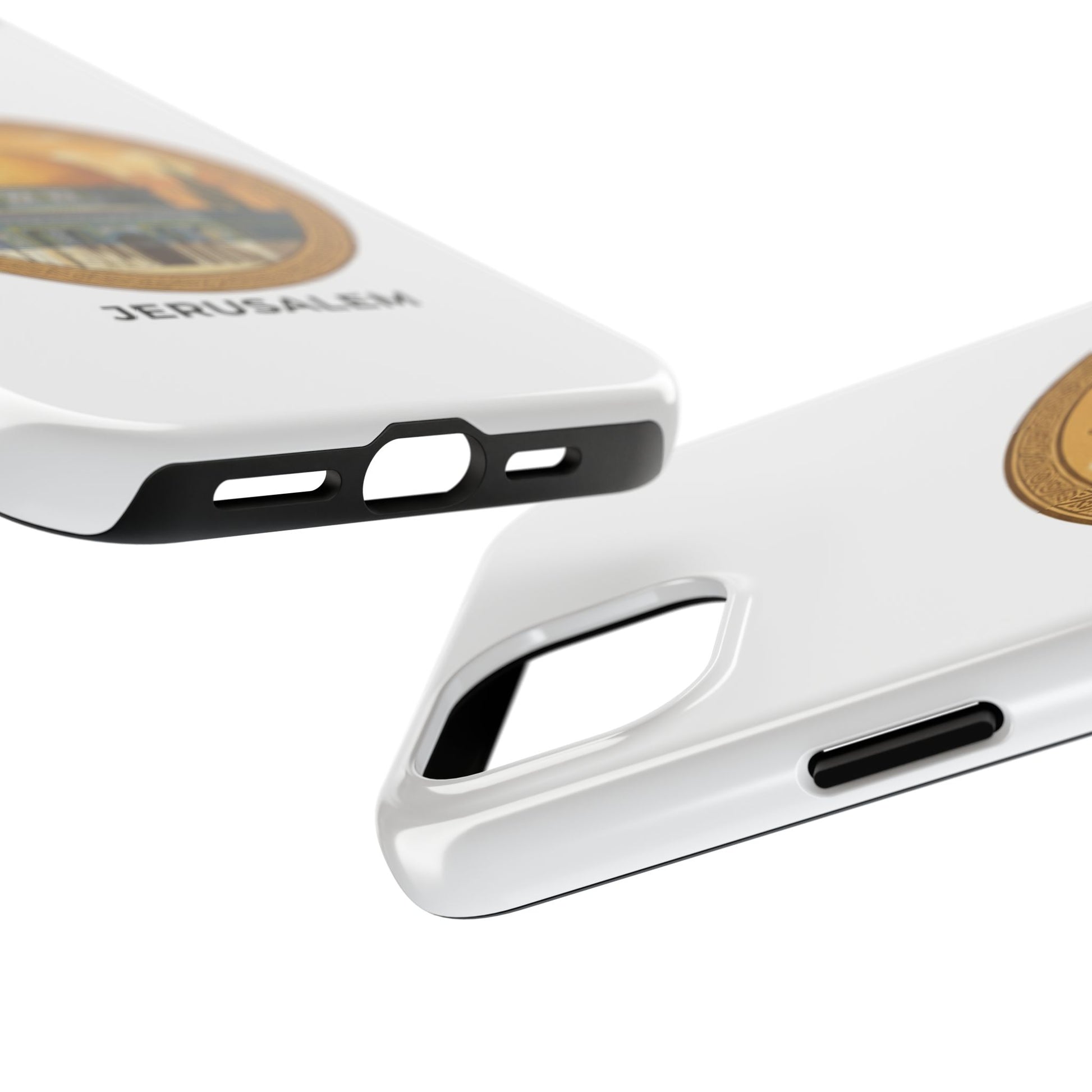 A protective phone case that carries the warm, storied light of Jerusalem wherever you go. The golden dome sits in a circular frame, rendered in soft vintage tones that feel like an old travel poster — calm, reverent, and quietly proud. The slim two-piece shell snaps around your phone while a flexible inner liner cushions against drops. The gloss finish makes the colors pop and holds up outdoors, so the illustration keeps its glow on daily commutes, temple visits, or quiet moments of reflection. It slips into a pocket easily, supports wireless charging, and adds a personal, meaningful touch to everyday life for someone who loves this city and what it represents.