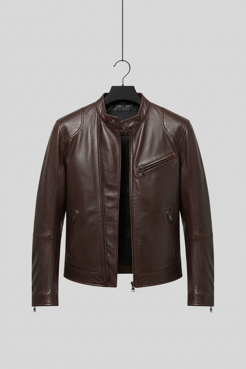 Avoid machine washing. Wipe with a soft dry cloth, keep it away from heat and direct sun, and store it on a wide hanger. Use leather conditioner occasionally for long term care.