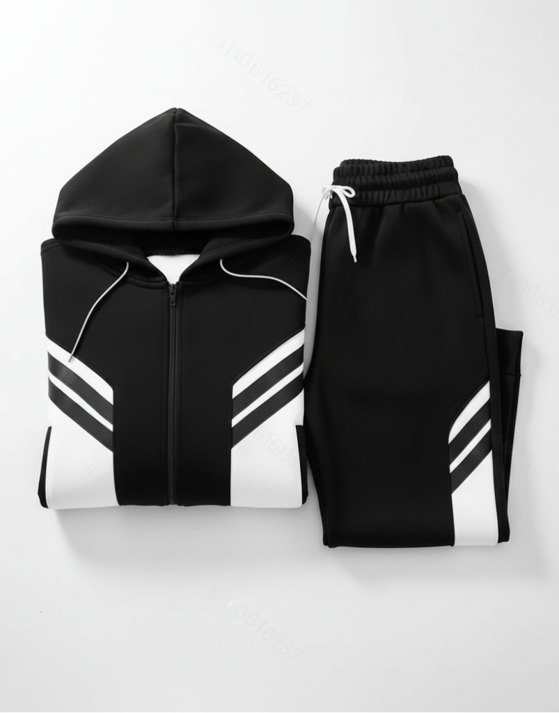 Men’s Black & White Hooded Tracksuit