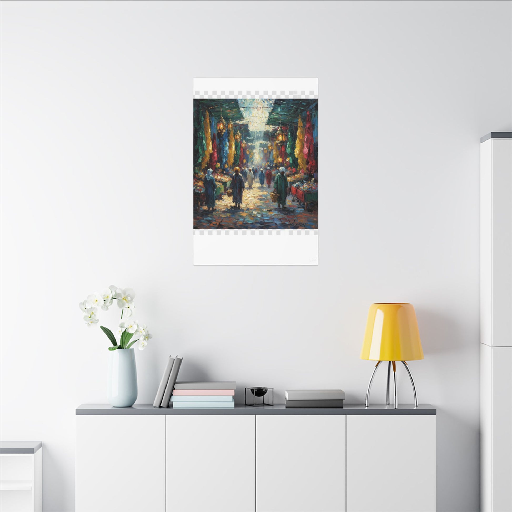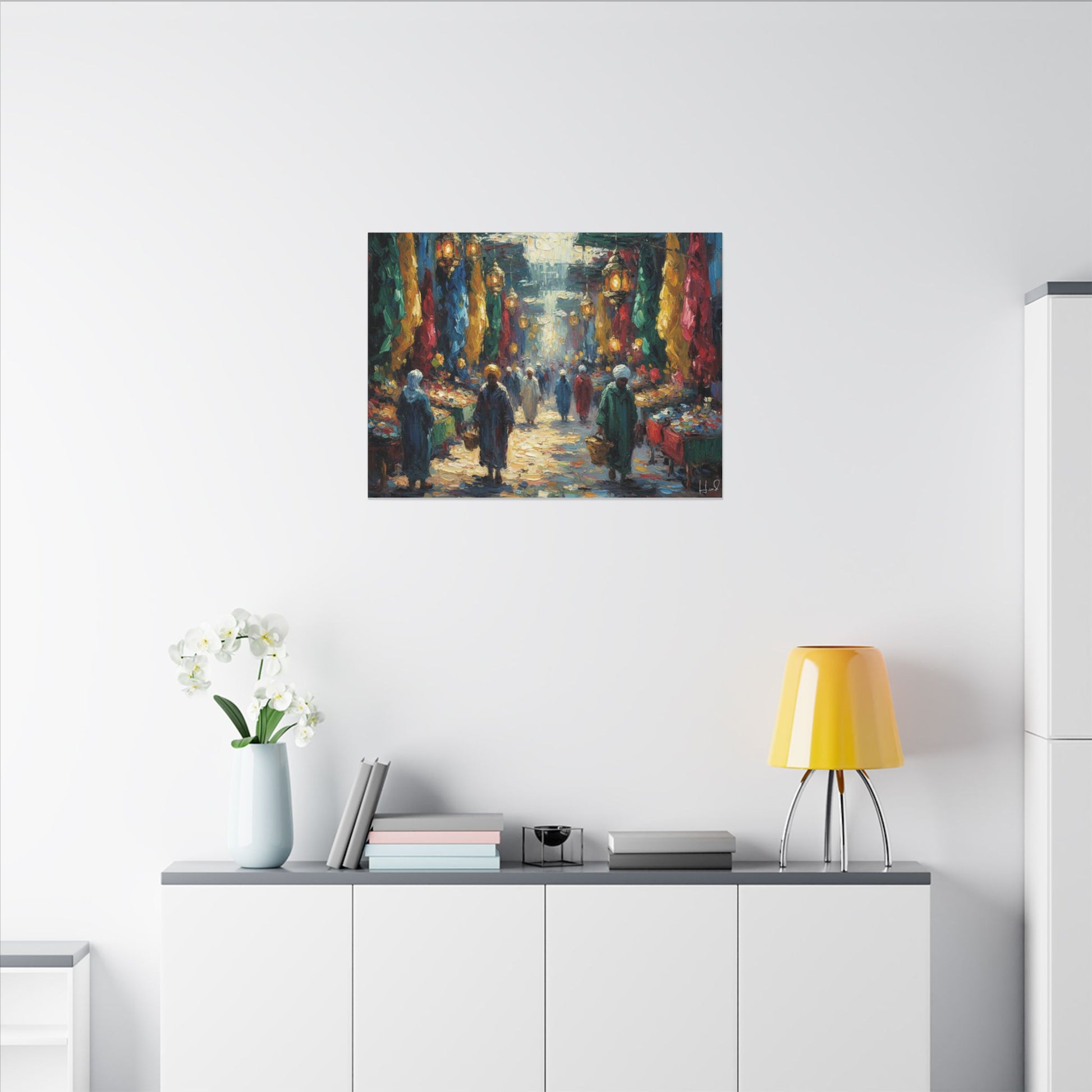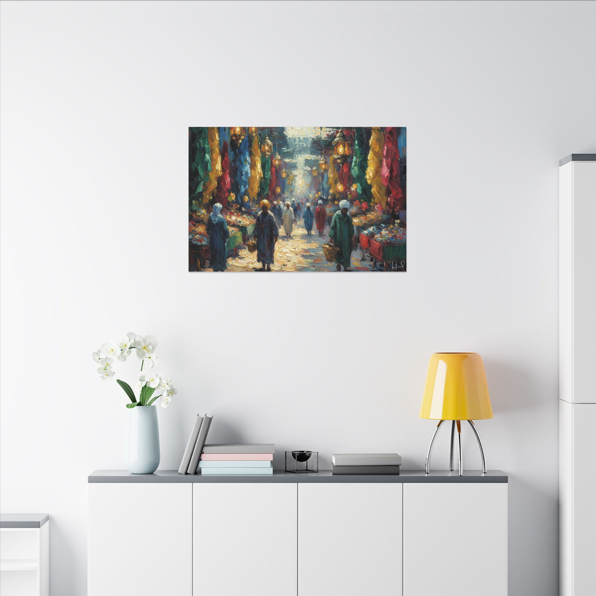Middle Eastern Market Matte Canvas Wall Art — Colorful Bazaar Street Scene