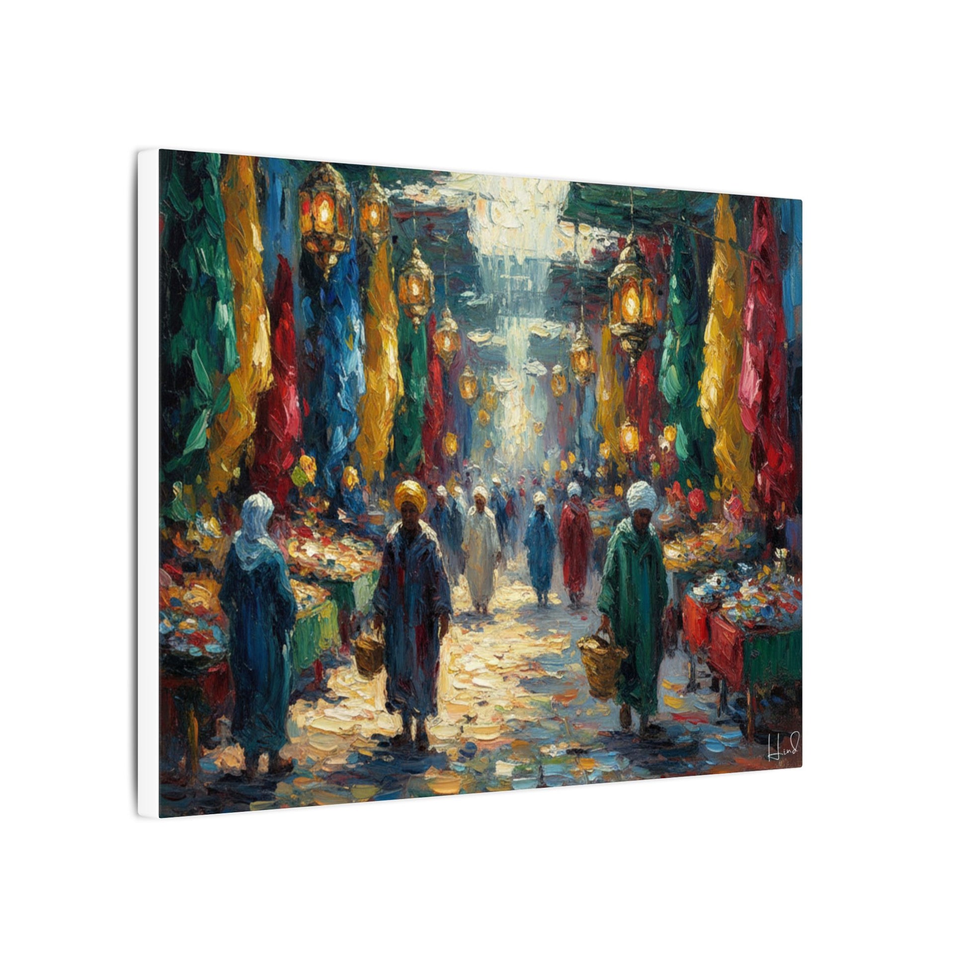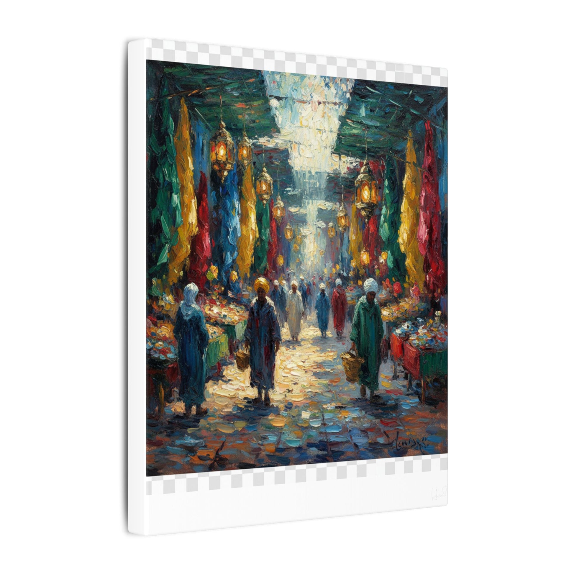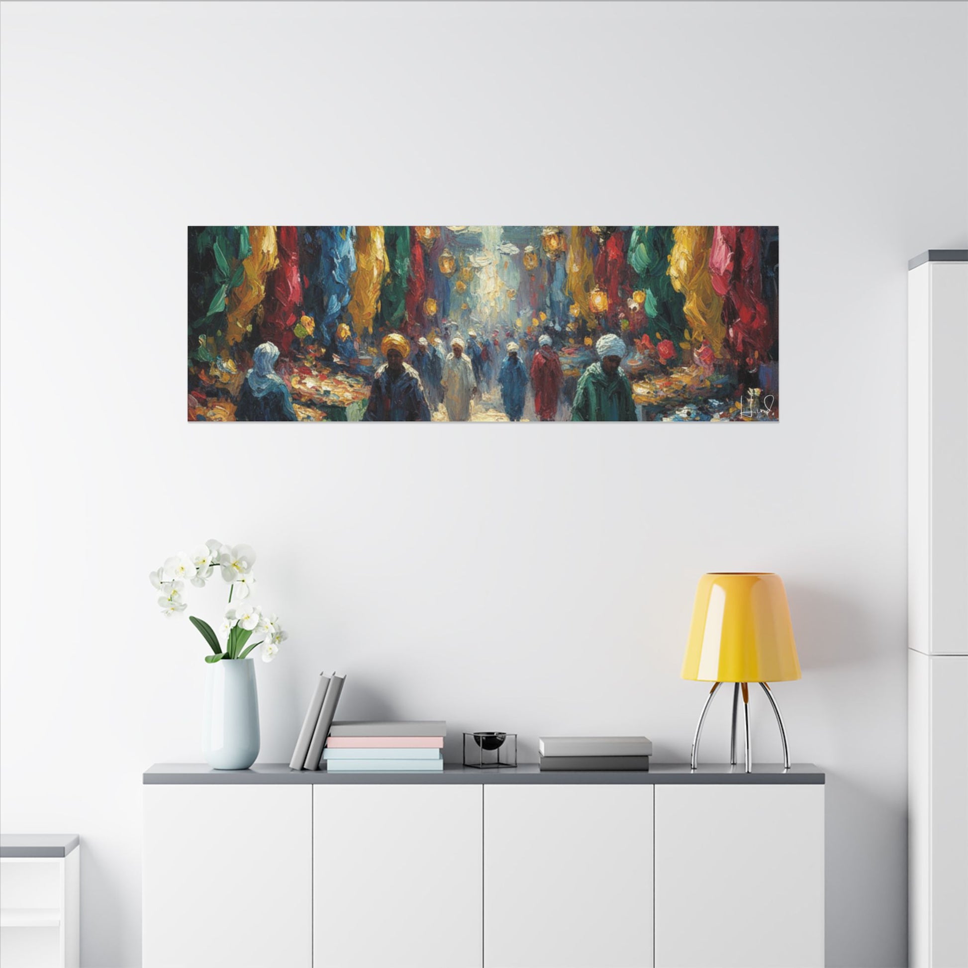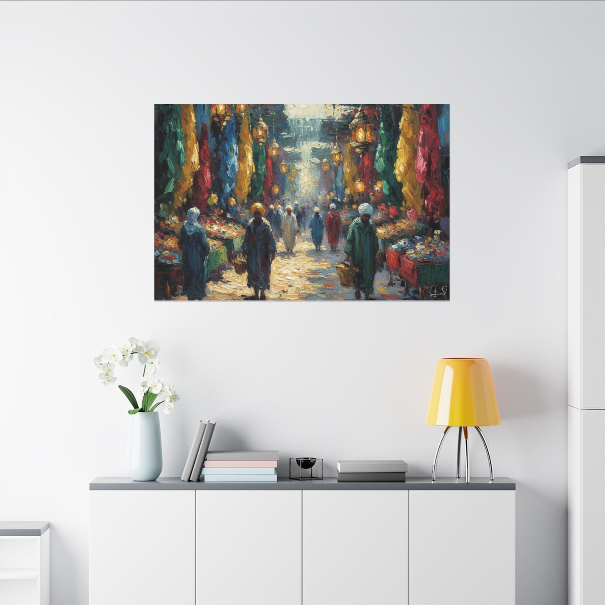 Middle Eastern Market Matte Canvas Wall Art — Colorful Bazaar Street Scene