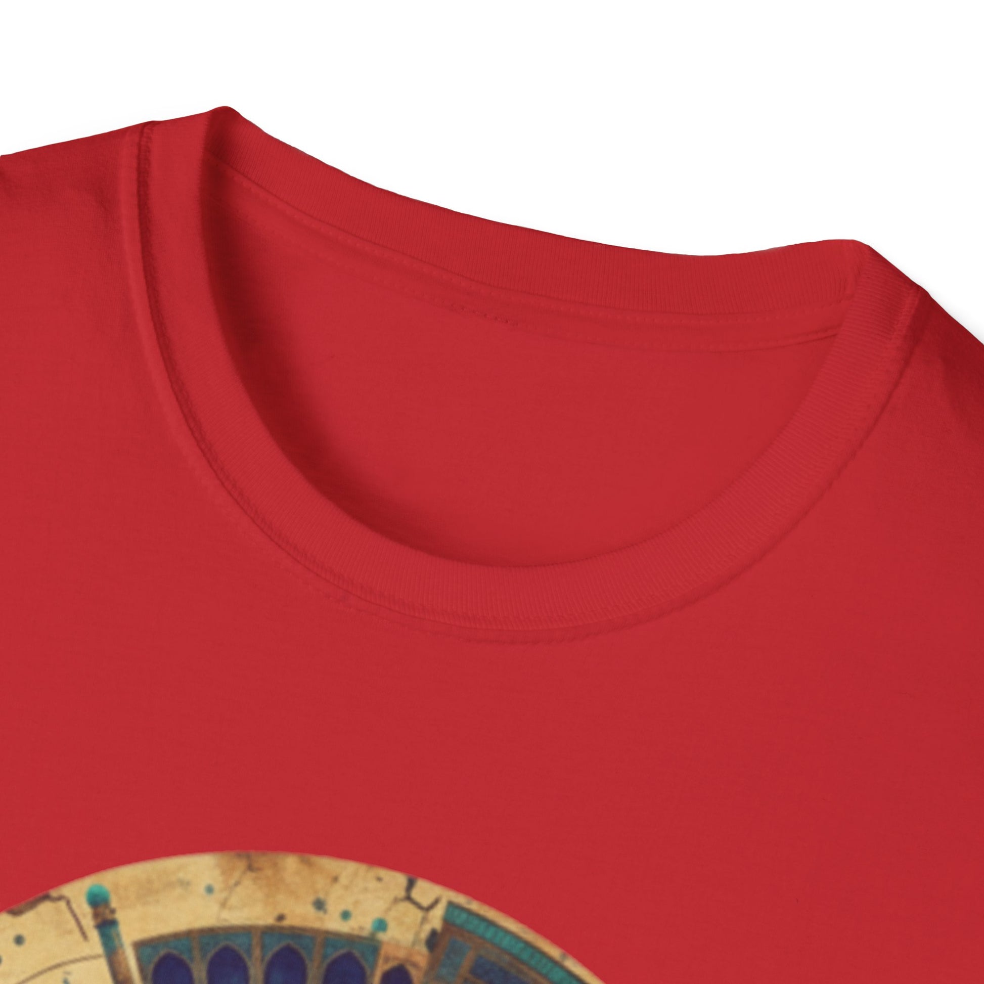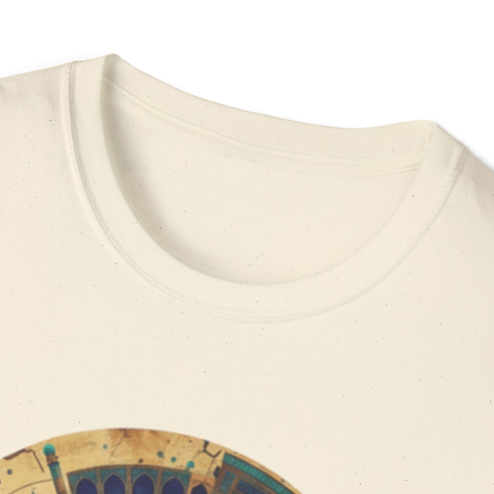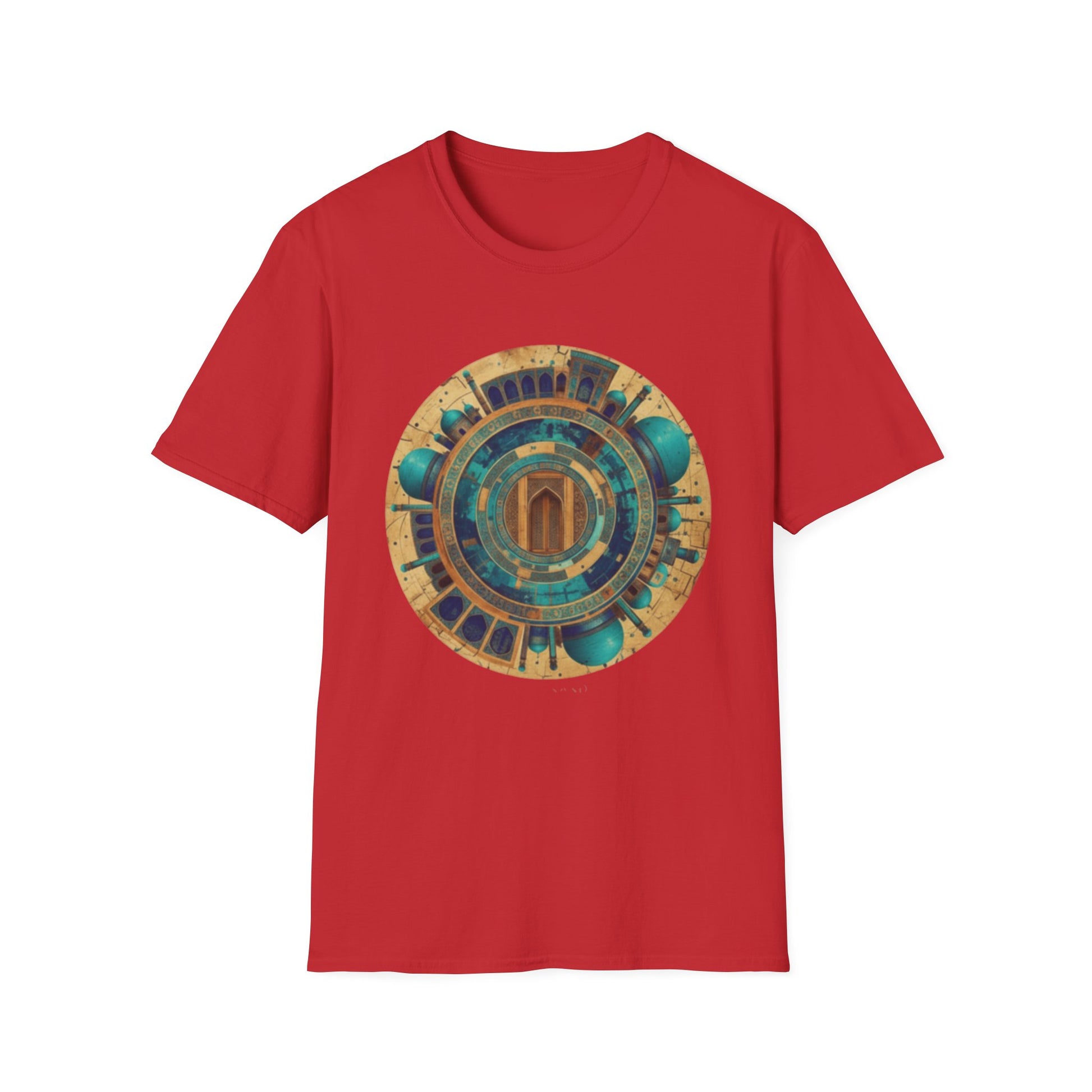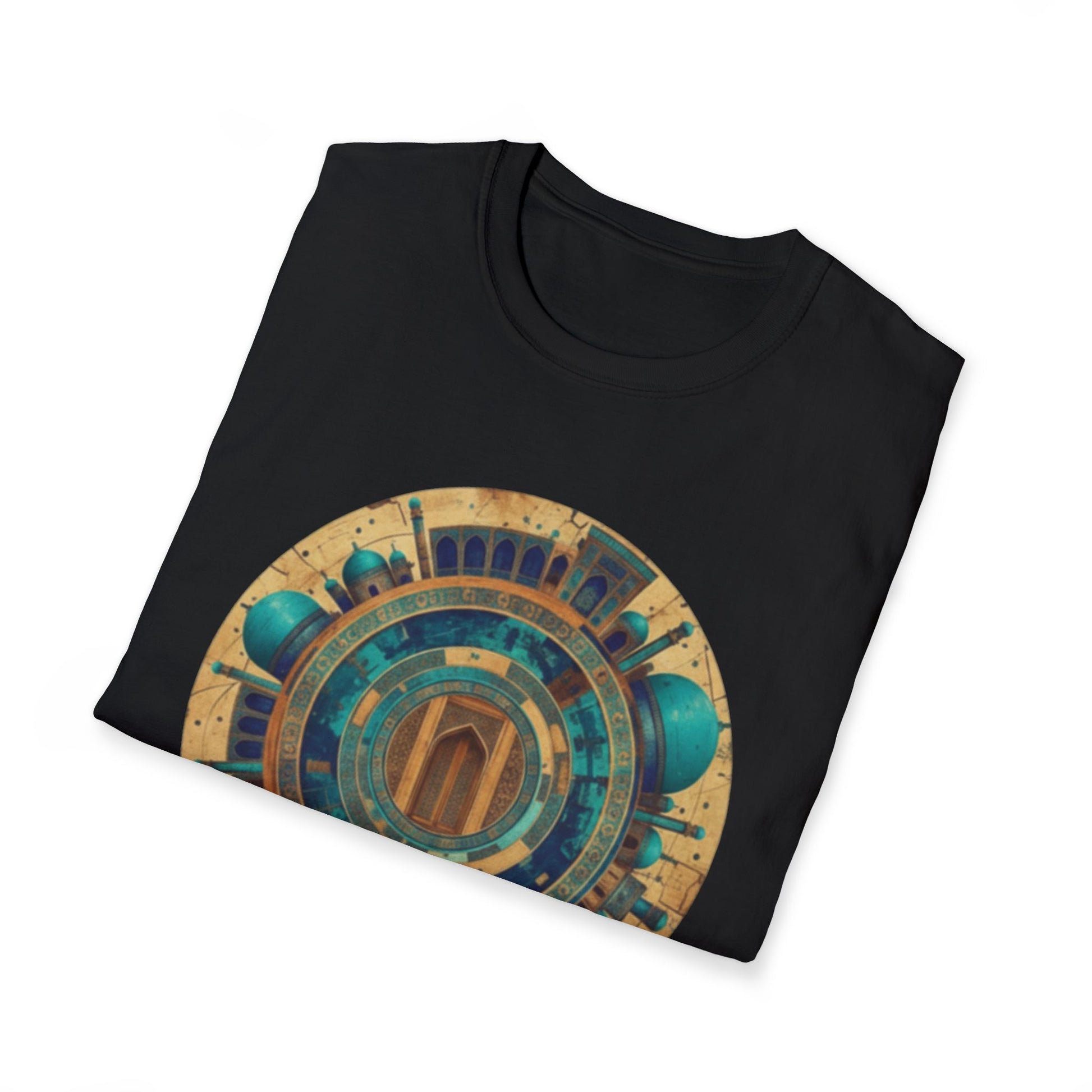 This lightweight cotton tee wears like a quiet story. At its center sits a circular, teal-and-gold mandala—part architectural blueprint, part weathered coin—calling to anyone who loves layered textures and subtle symbolism. The classic crew cut and clean silhouette let the art take the stage while remaining easy to layer under a jacket or wear alone on warm days. It settles like a familiar companion for city wanderers, studio makers, and weekend archivists who collect experiences more than things. The shirt’s soft hand and breathable feel invite long afternoons of sketching, wandering markets, or settling in with a record player and warm tea. Over time the printed motif gains that lived-in charm that feels less like a brand and more like a personal emblem.