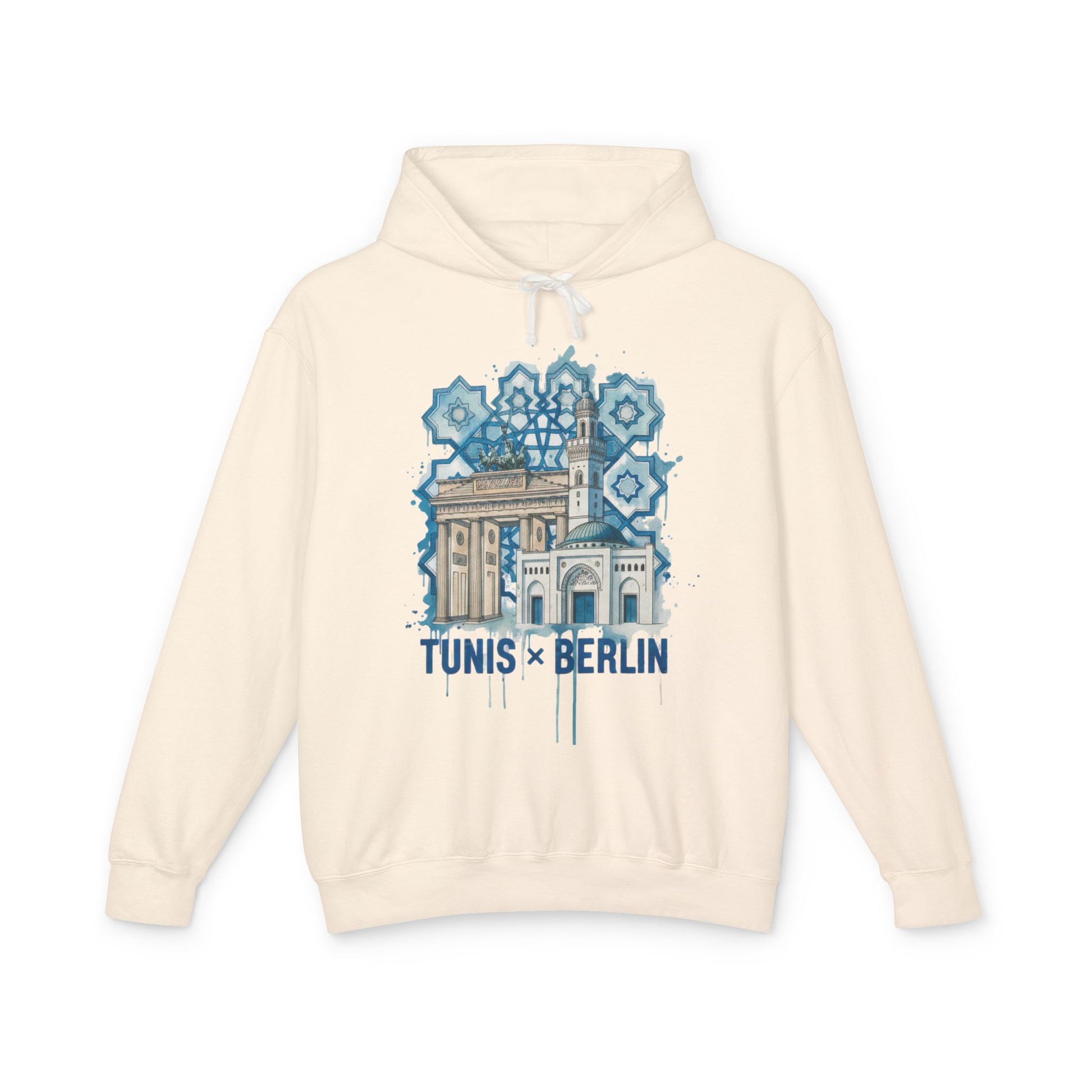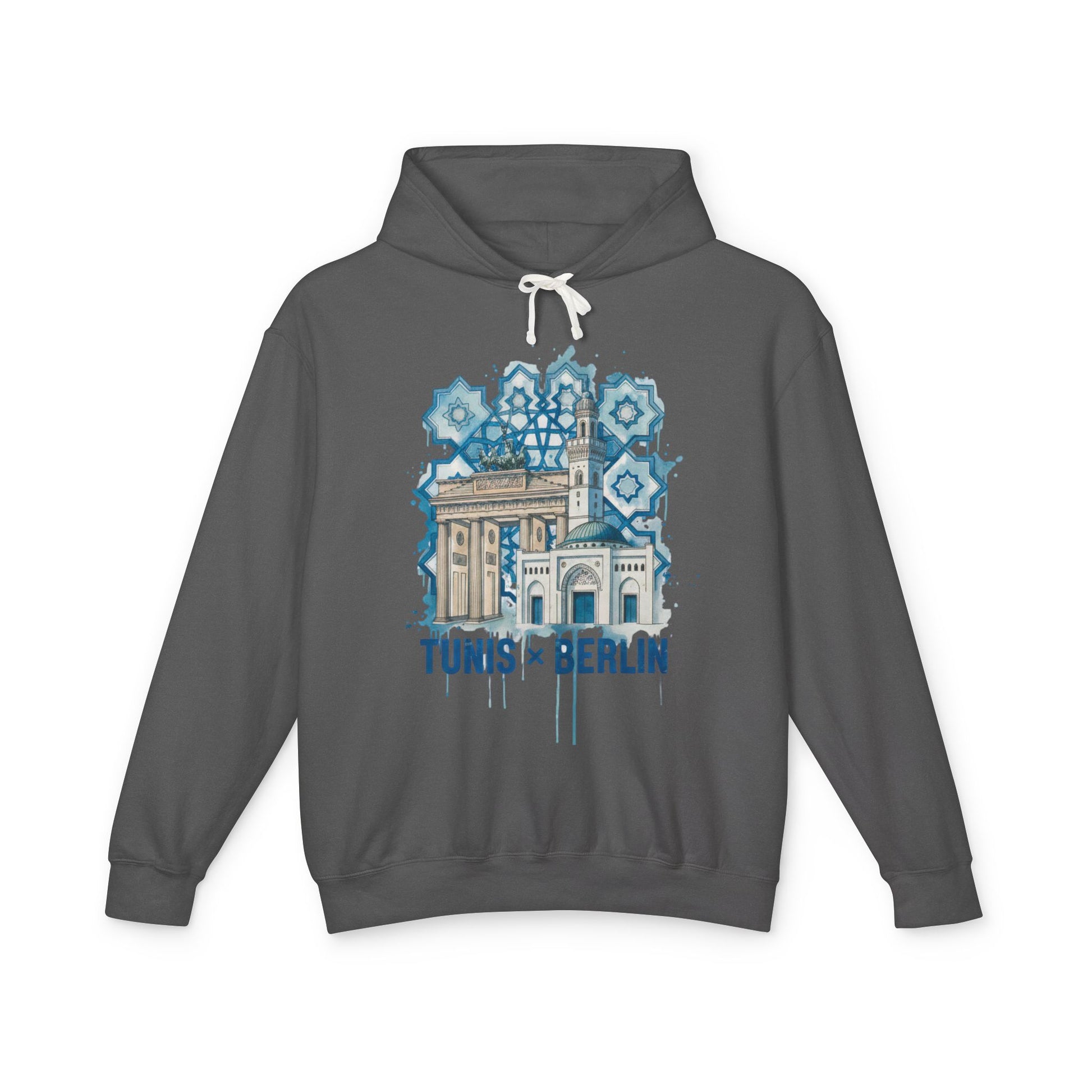 Tunis × Berlin Hoodie — Travel Mashup Graphic Hooded Sweatshirt